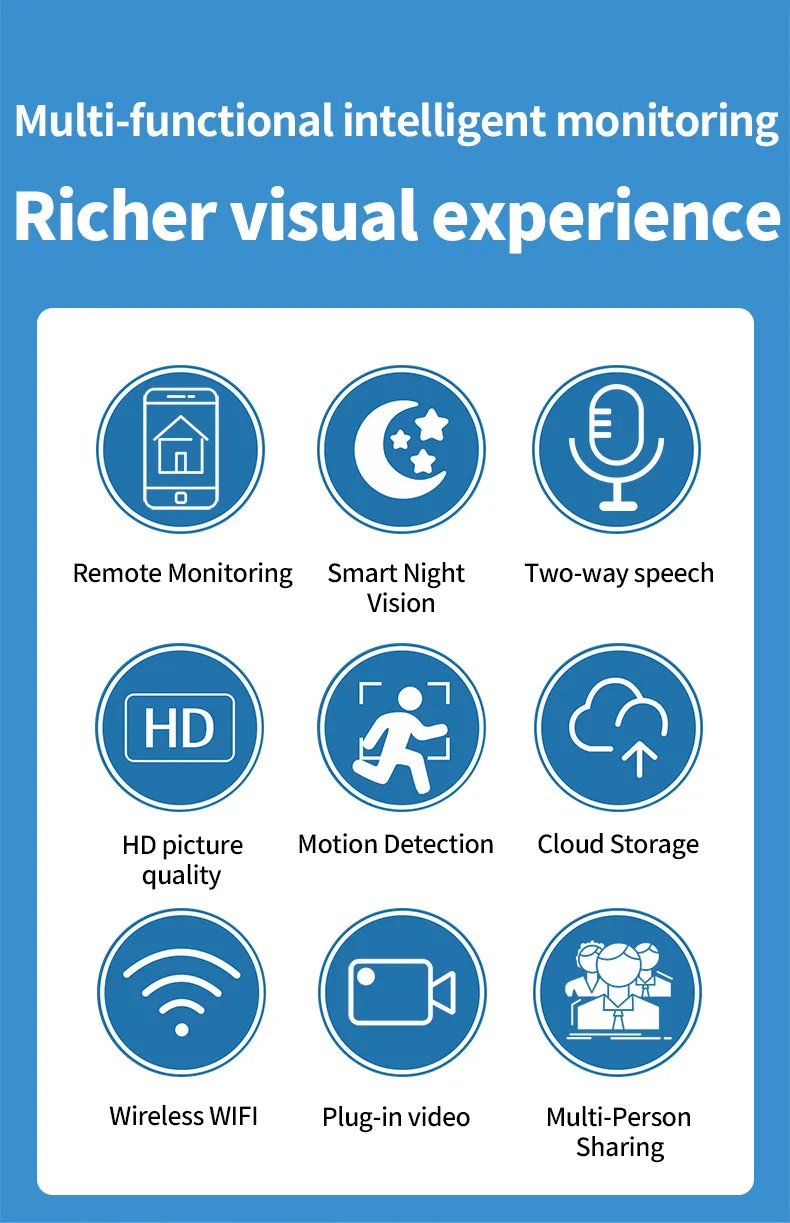 The V380 camera offers secure storage options, including cloud storage and support for microSD cards (up to 128GB). This ensures that your recorded footage is safely stored and easily accessible, providing peace of mind knowing that important moments are preserved.
