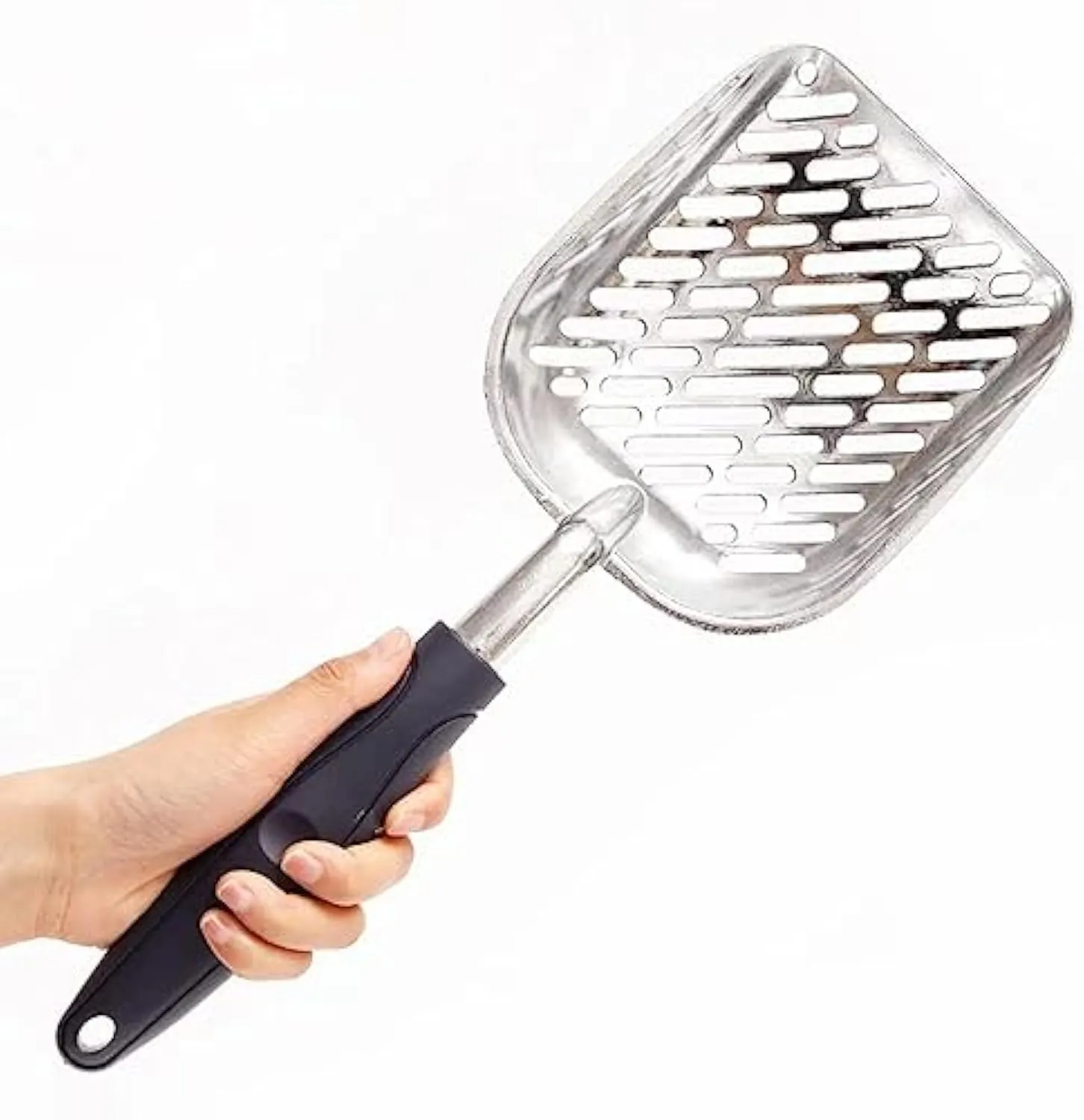 - Large scoop face, long handle, 5 mm hole spacing, allows usable cat litter to keep kittens fresh every day, ideal for families with many cats