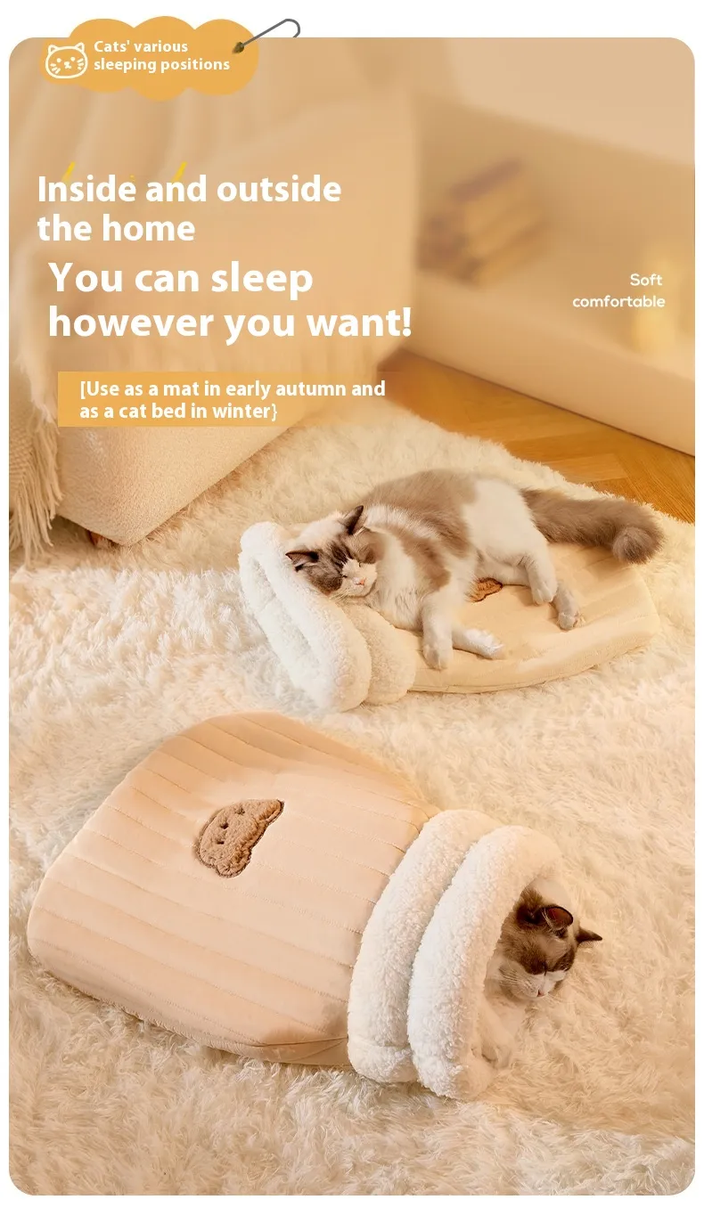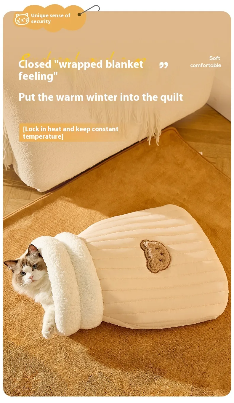 Cats are naturally drawn to cozy, enclosed spaces. The Cat Sleeping Bag provides a secure, comforting environment where your pet can sleep peacefully, reducing anxiety and stress.