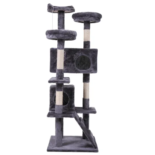 Cat tree cat tower with catching ball, plush mat, ladder and indoor cat apartment, gray