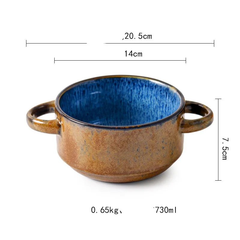The double ear design of the bowl is not only stylish but also practical. The two handles make it easier to grip, even when the bowl is filled with hot food. No more awkwardly trying to balance a heavy bowl with one hand—this bowl is designed for comfort and ease of use, so you can serve and enjoy your meal without the worry of spilling or burning yourself.