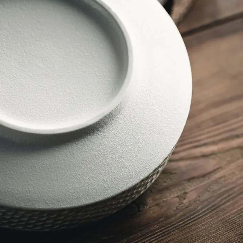Product Category: DiskMaterial: PorcelainPattern: HammerStyle: creativeShape: roundApplicable scene: Hotel, food, coffee, teaApplicable object: AdultSurface technology: underglazePacking list: