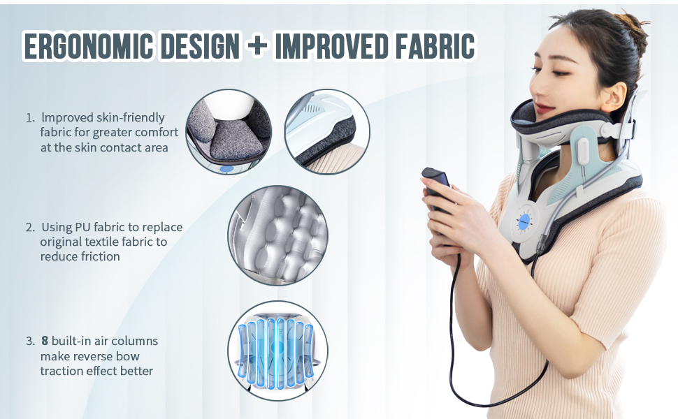 and traction. The air pressure release valve prevents overinflation, ensuring a safe and controlled therapy experience. The collar