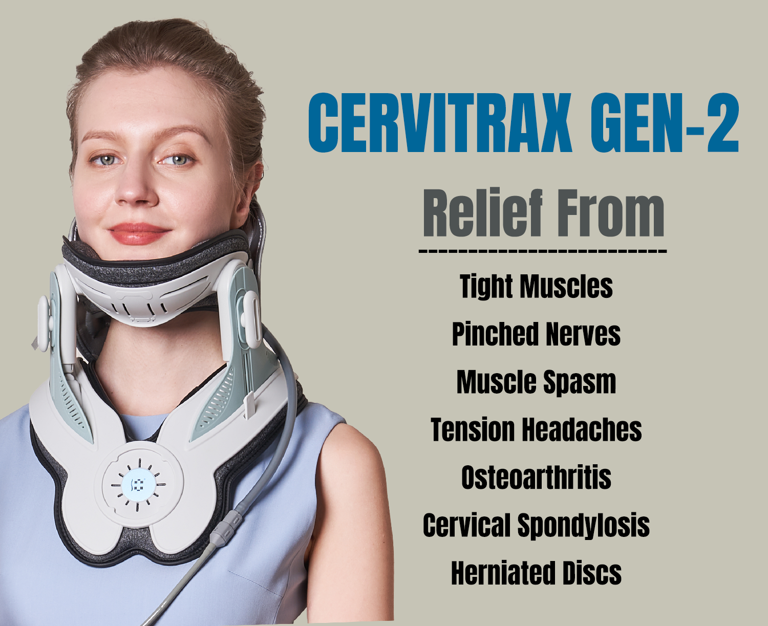 CERVITRAX GEN-2 gently stretches the neck to reduce pressure on the spine by pulling and separating the vertebrae.