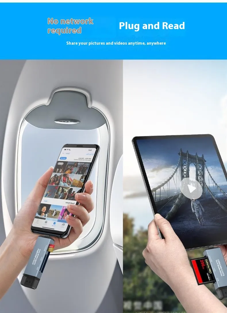 Whether you're editing photos, backing up files, or simply transferring documents, the CF Card Reader SD Card USB Three-in-One ensures fast, reliable performance with plug-and-play functionality, making it an essential tool for both personal and professional use.