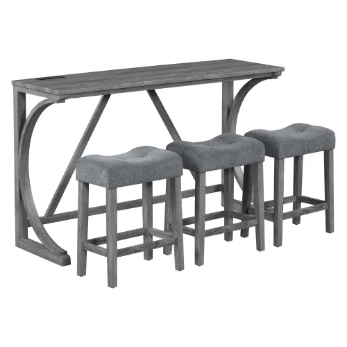 Bar Table Set with Power Outlet, Bar Table & Chair Set, 4 Piece Table Set, Industrial Breakfast Table Set, For Living Room, Dining Room,