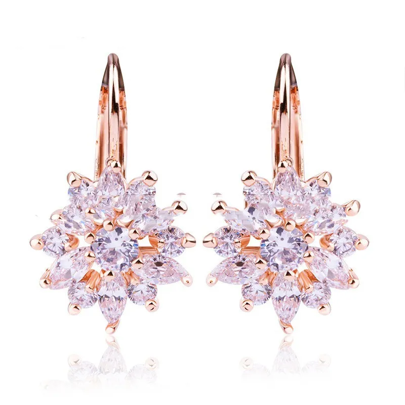 The timeless combination of floral motifs and zircon stones makes these earrings suitable for both casual and formal occasions, ensuring they pair effortlessly with any outfit.