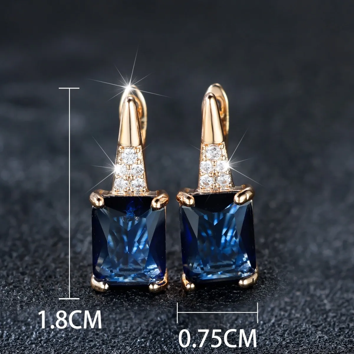 Champagne Gold Rectangular Chamfered Sapphire Blue Earrings For Women