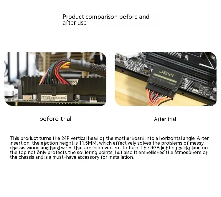 - 90-Degree Angled Connector: Directs the 24-pin power cable at a right angle for better cable management.