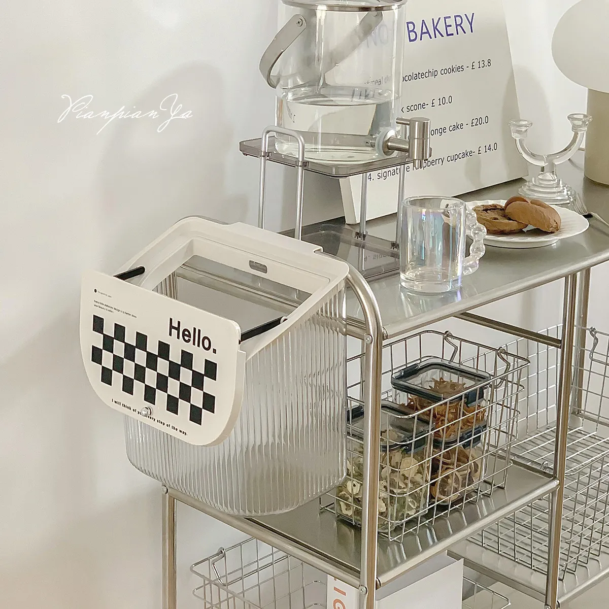 Checkerboard Kitchen Trash Can Wall Mounted With Lid