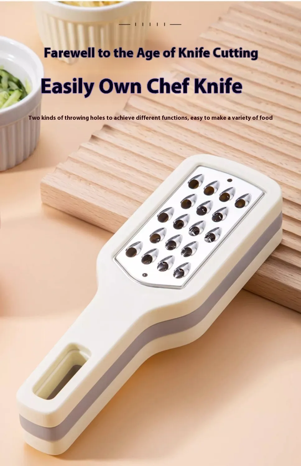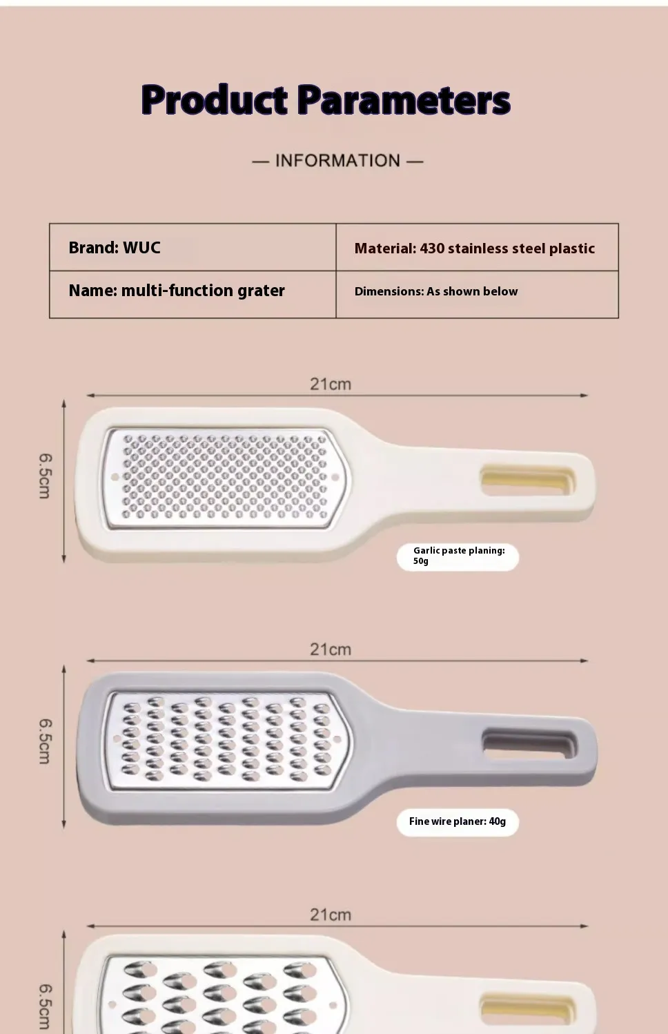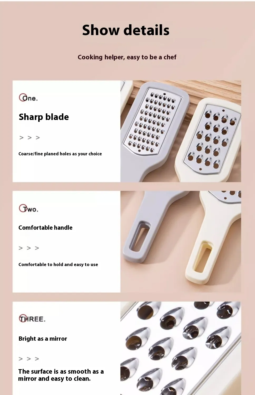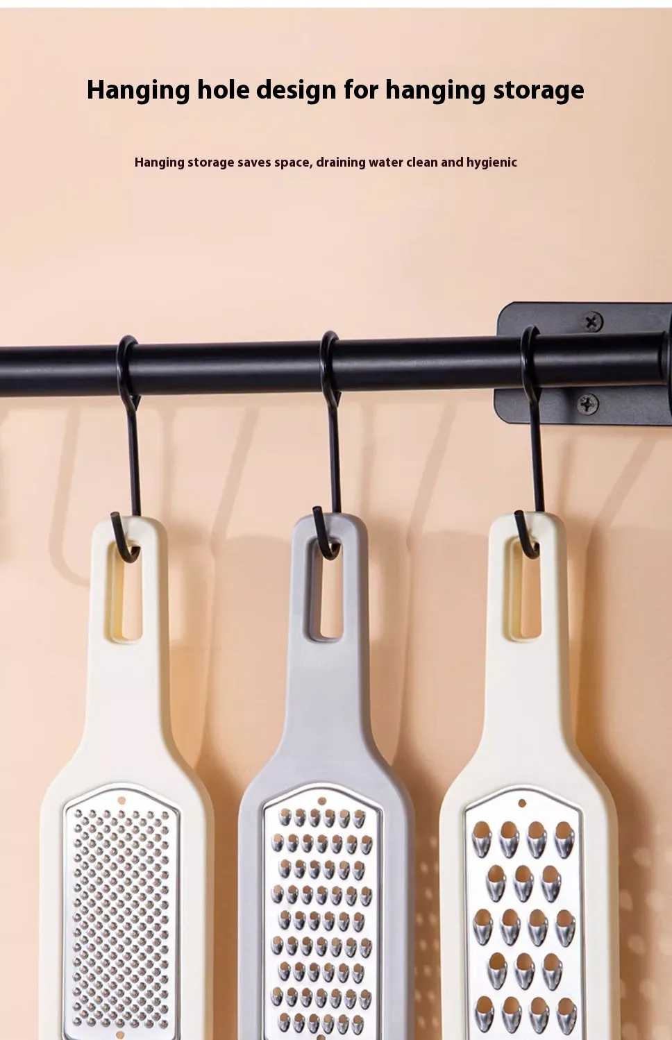 to use. The tail of the grater is provided with a hanging hole, and three graters can be stacked and hung together, saving space
