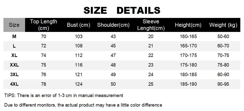 Size: M, L, XL, XXL, XXXL, 4XL Size Information:
