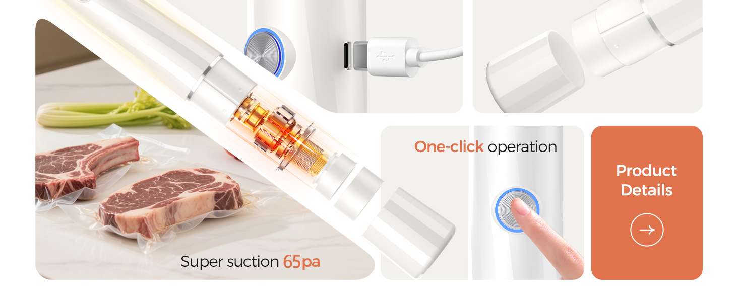 - 🧑🍳INTELLIGENT HANDHELD VACUUM SEALER& ONE KEY OPERATION & CONVENIENT: Our compact vacuum sealer is also equipped with intelligent sensors, the pressure reaches 40KPa automatically stops the vacuum, the science of maintaining the taste of food, while the range is longer and more energy-saving, you don't need to waste more time complex operation of the vacuum sealer for food, free your hands to show your culinary skills.