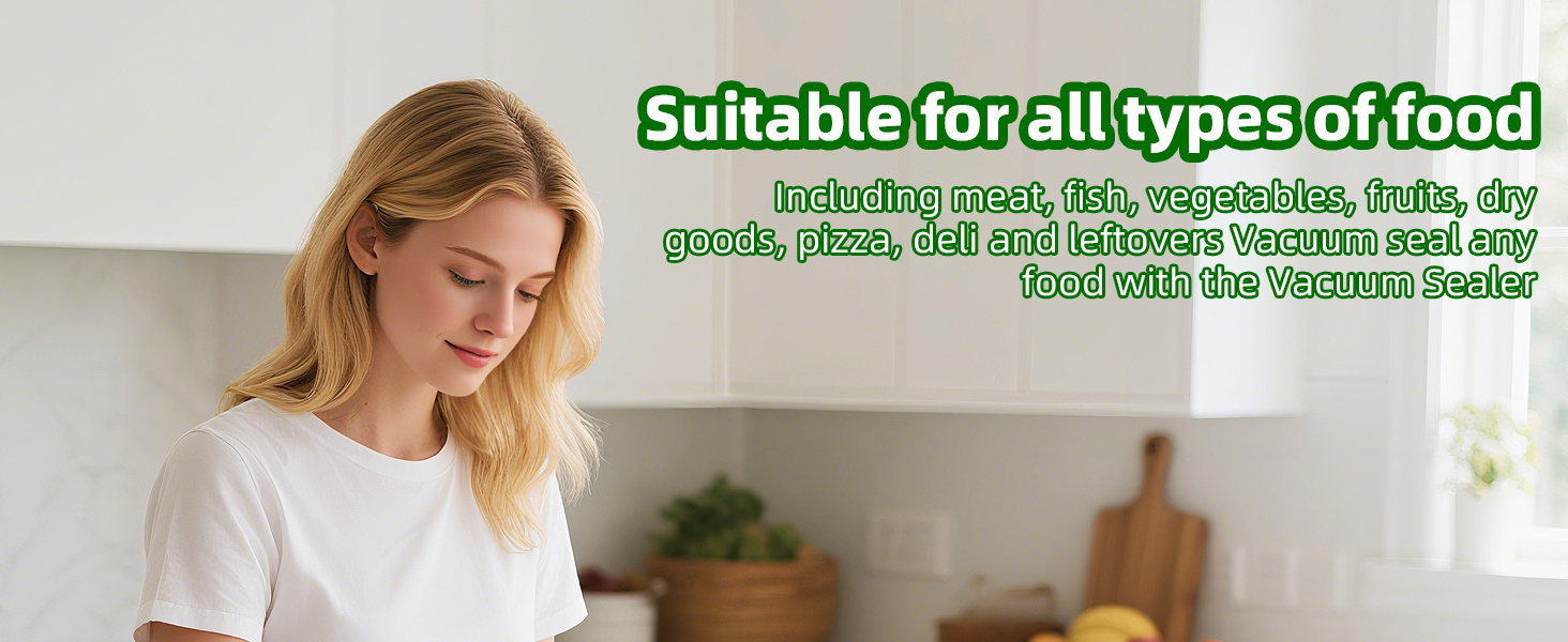 - 🥑 SUITABLE FOR ALL TYPES OF FOOD: Meat, fish, vegetables, fruits, dry goods, pizza, cooked food & leftovers… Vacuum seal anything with Chef Preserve.