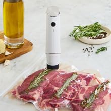 The Chef Preserve Compact Vacuum Sealer is a rechargeable, handheld device that allows you to vacuum seal your food in less than 5 seconds.