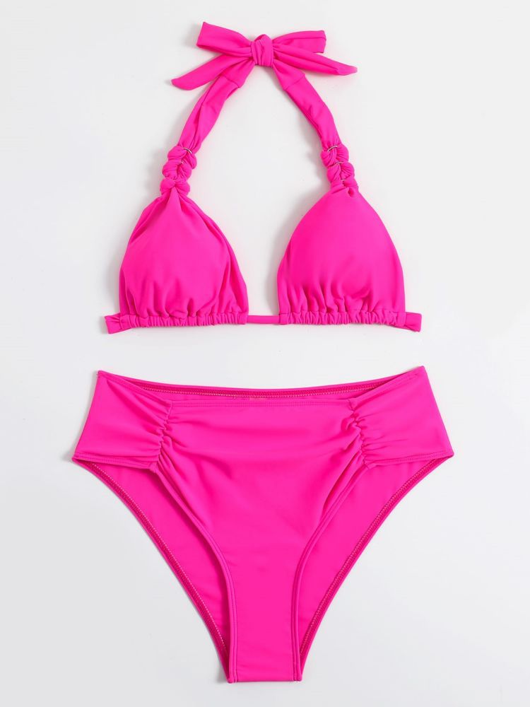Chic High-Waist Bikini Set with Bow-Tie Halter