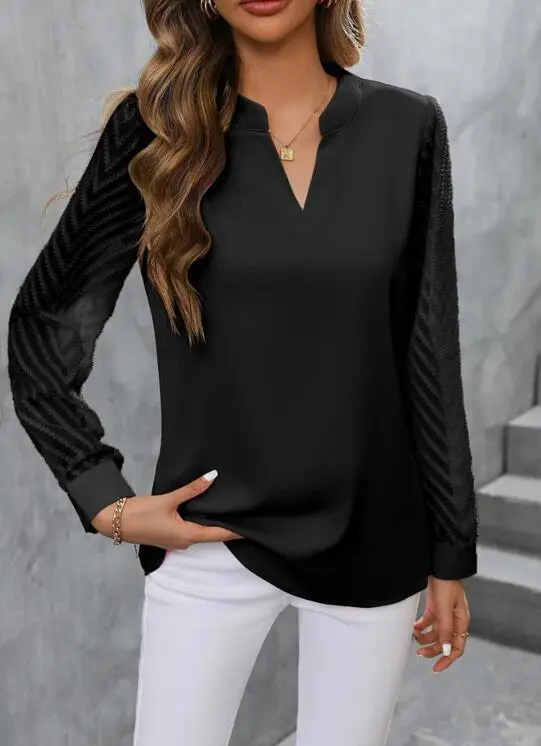 Elevate your wardrobe with the Chiffon Patchwork Long Sleeve Solid Color and V-neck Shirt. This stylish top combines the elegance of chiffon with the modern touch of patchwork design, creating a versatile piece that can be dressed up or down for any occasion. Whether you're heading to the office or going out for a casual evening, this V-neck shirt offers the perfect blend of sophistication and comfort.