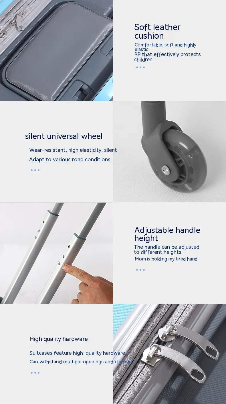 Whether you're heading to the airport, traveling by train, going on a road trip, or visiting family and friends, the Children Can Sit and Ride Multifunctional Trolley Case is the perfect way to keep your child’s travel experience fun and stress-free. It helps eliminate the frustration of carrying heavy luggage, while ensuring your child stays engaged and entertained during your journey.