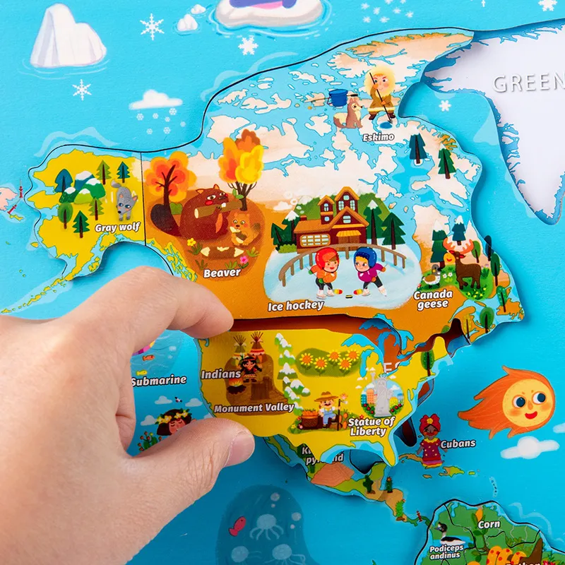 Children Educational Toys World Map Wooden