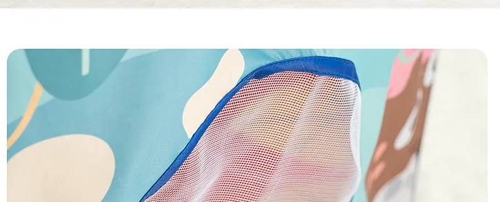Two mesh windows for air ventilation help keep kids cool and allow parents to monitor their children.