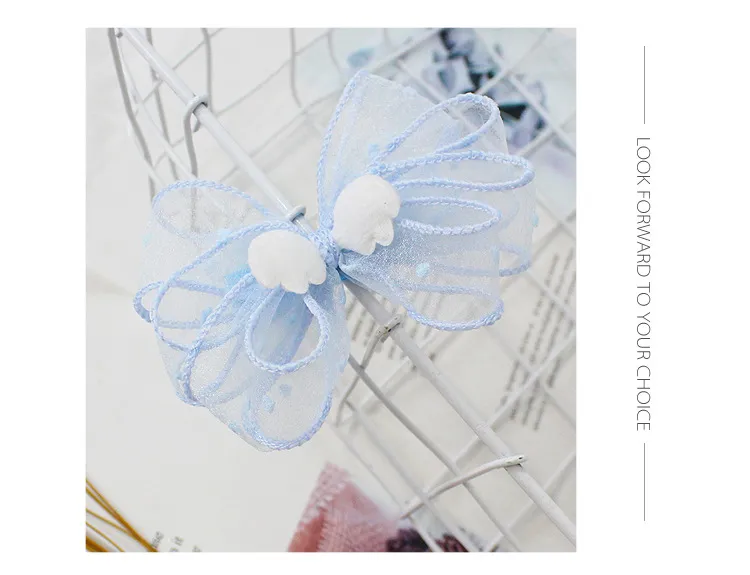 The bow is adorned with delicate angel motifs, creating a look that’s both whimsical and elegant, perfect for little girls.