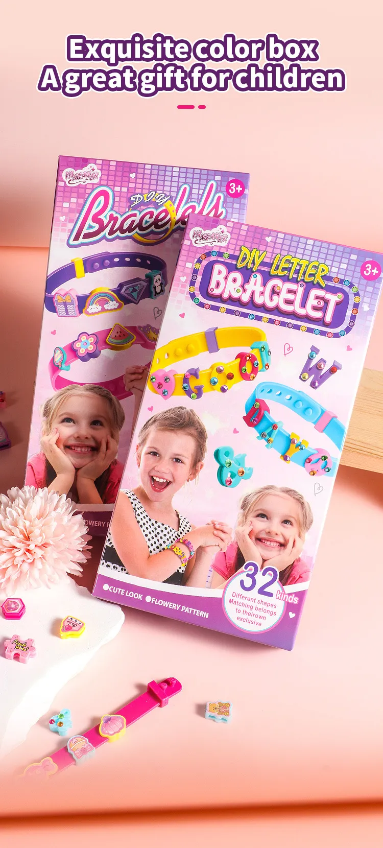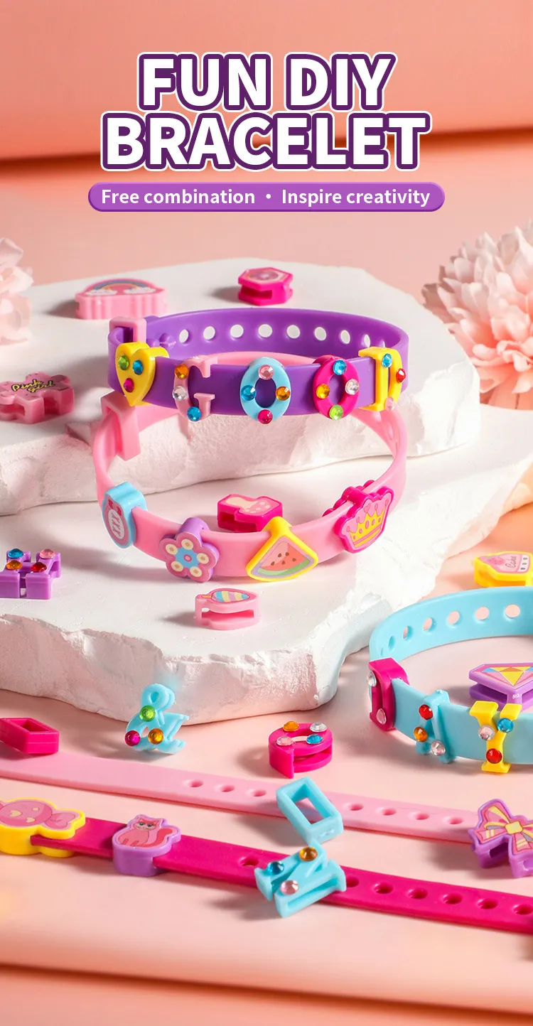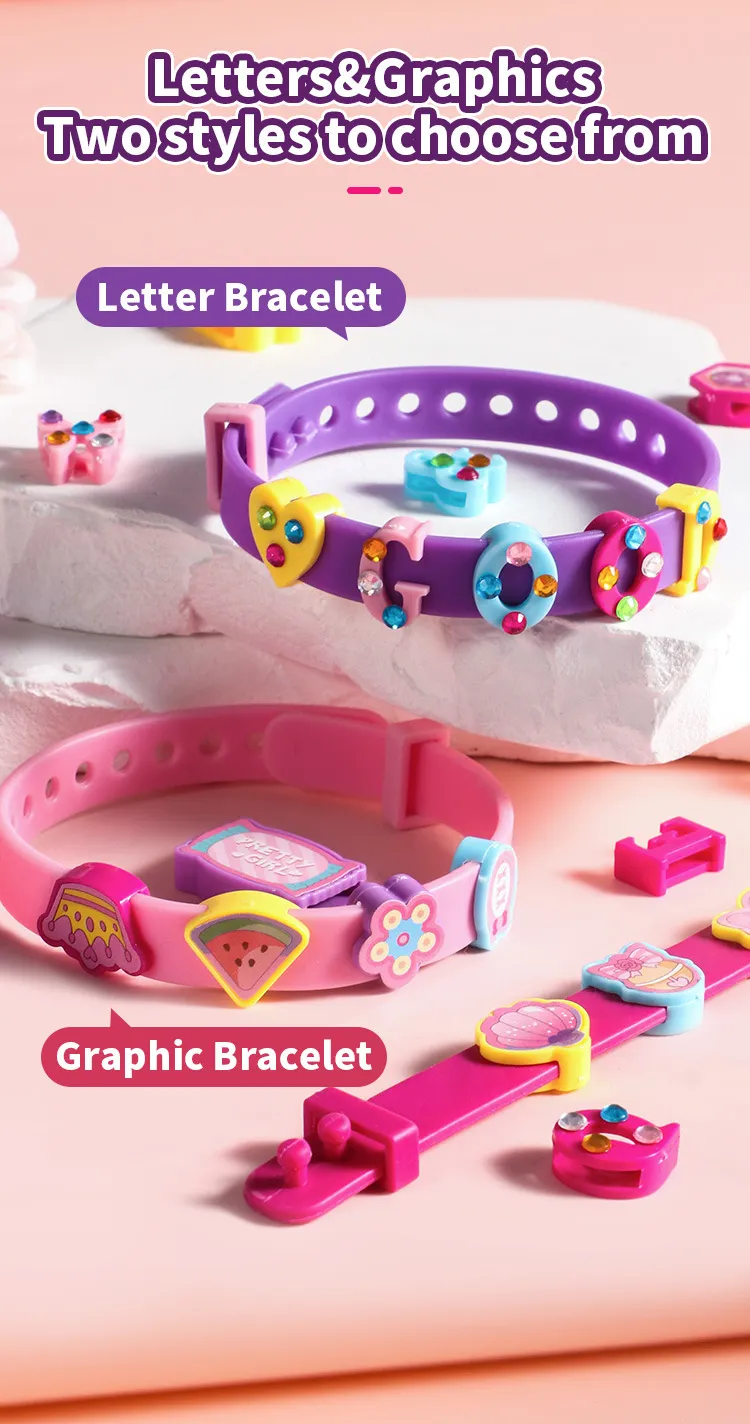 alphabet beads, and cartoon-themed charms, giving children the freedom to design their own personalized bracelets and accessories. The