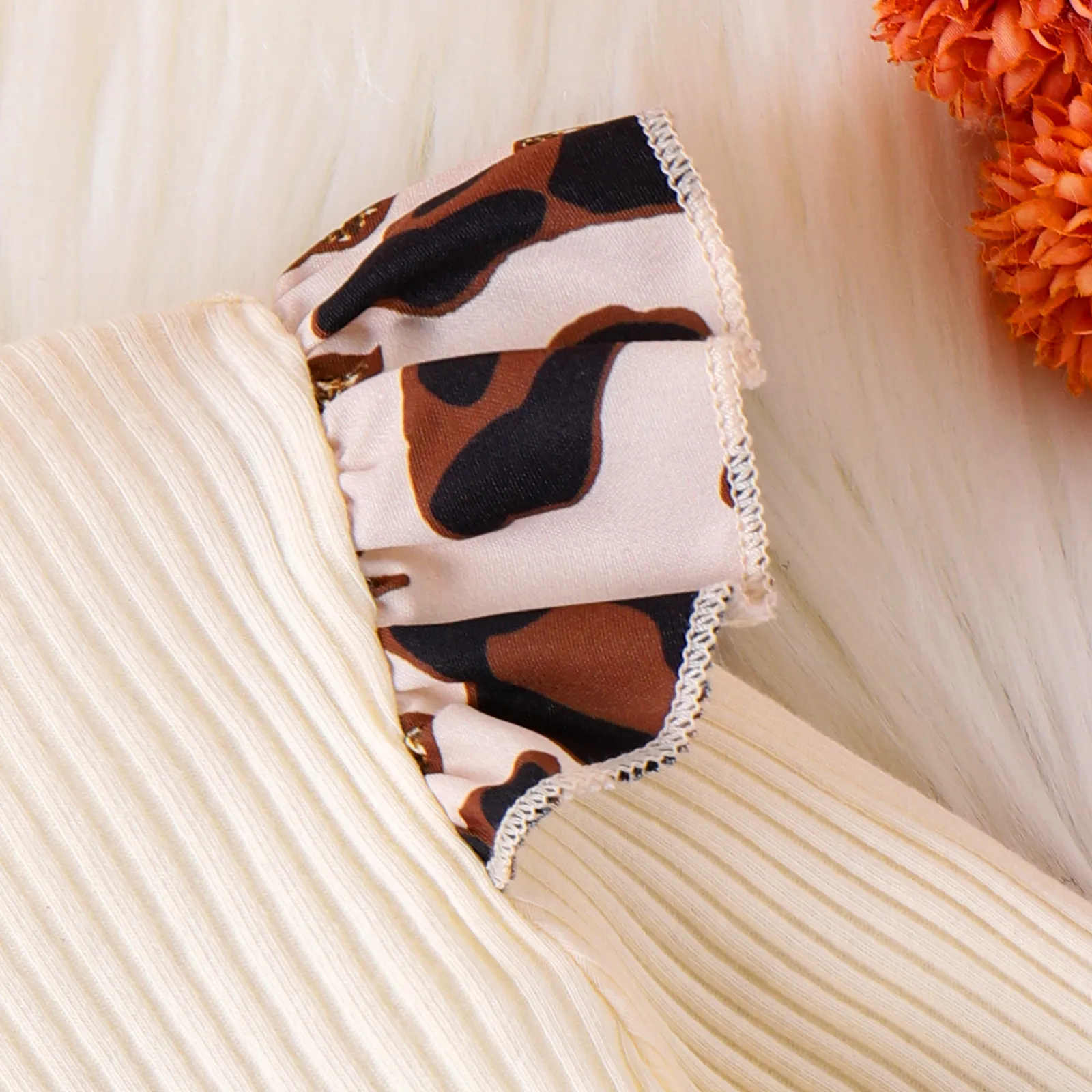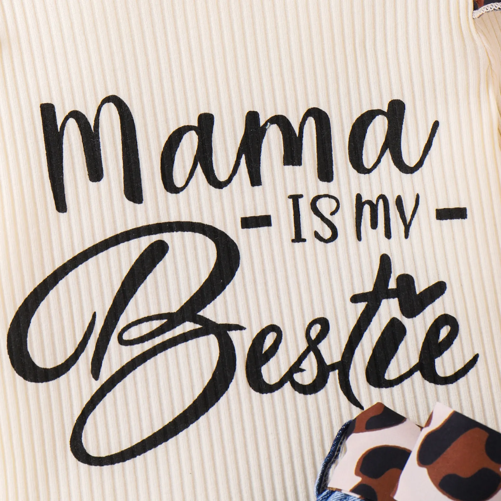 Children's Stylish Suit – Stripe Letter Jacket & Leopard Patch Denim Skirt
