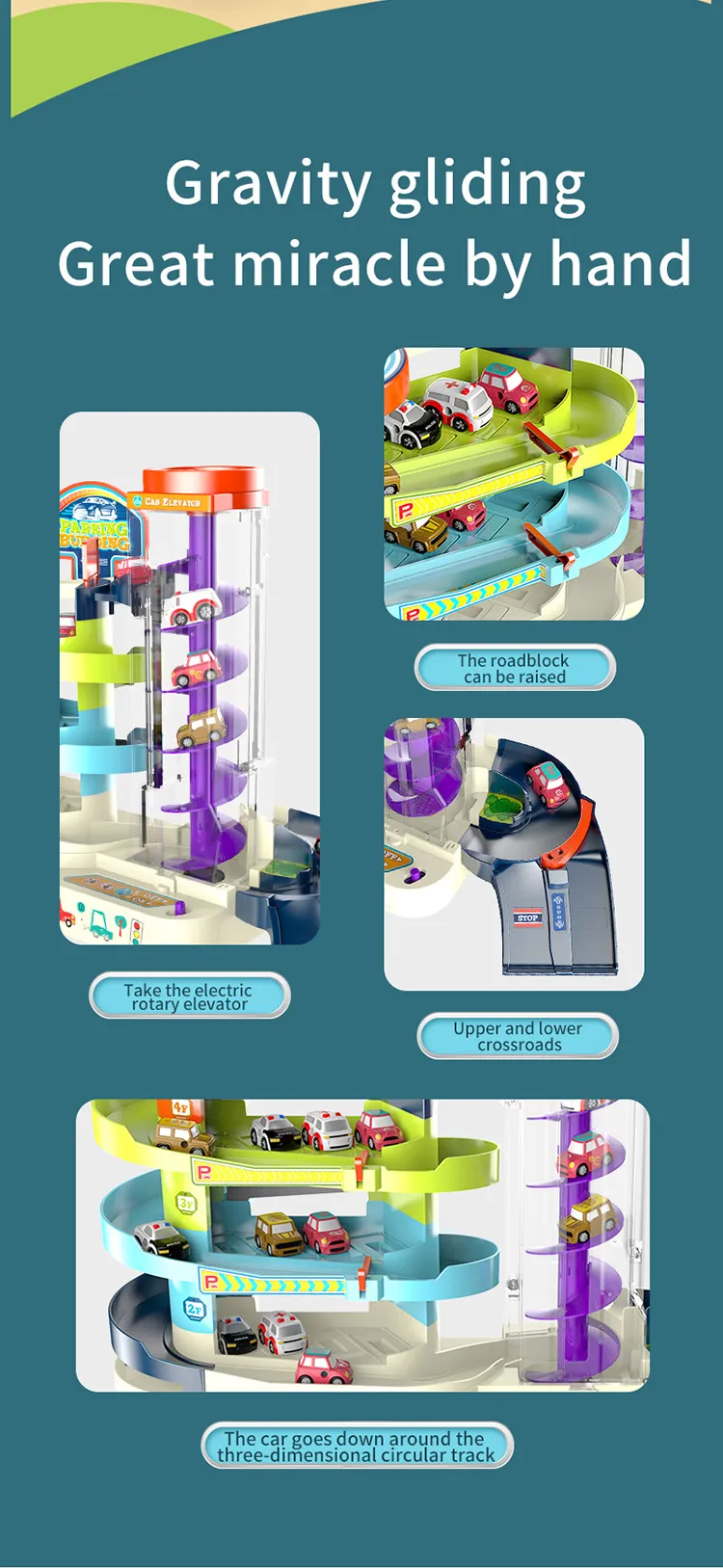 Children's Adventure Steering Wheel Car Building Parking Lot Intelligence Brain Rail Car