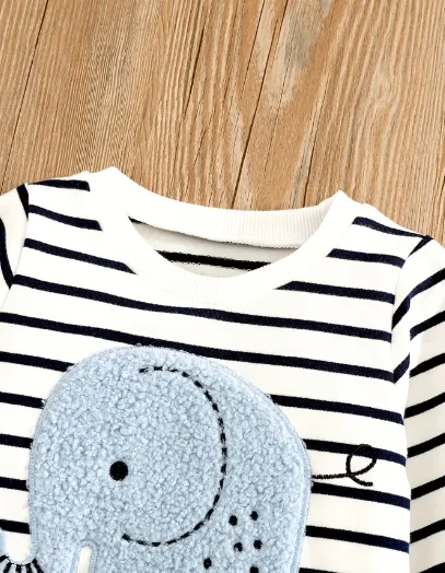 Key Features of the Children's Baby Suit Embroidered Striped Long-sleeved Jeans Suit