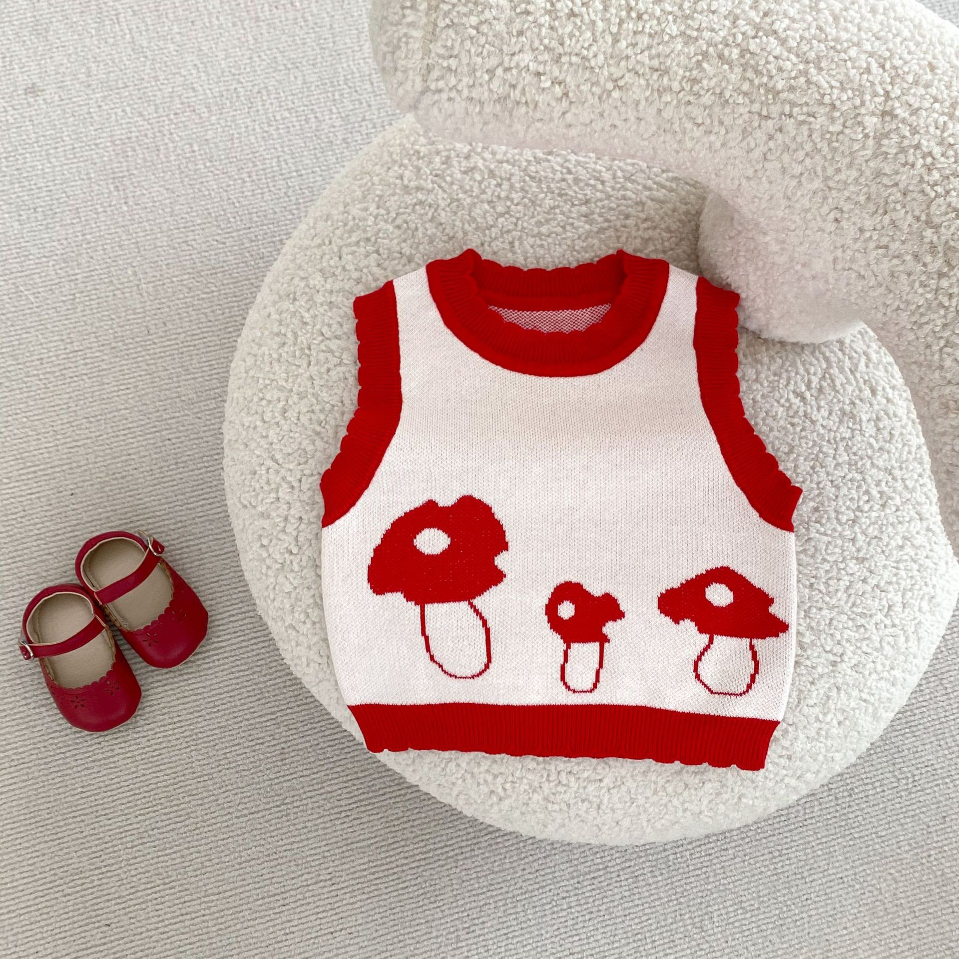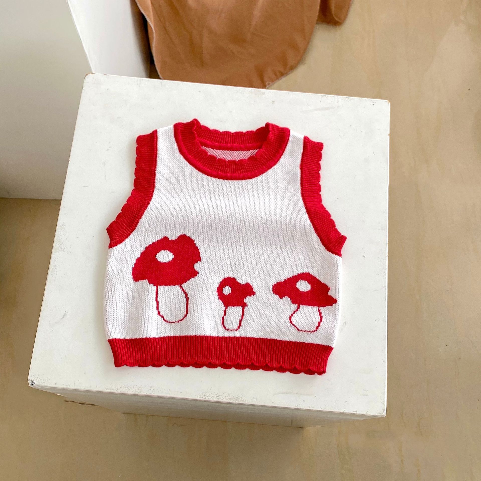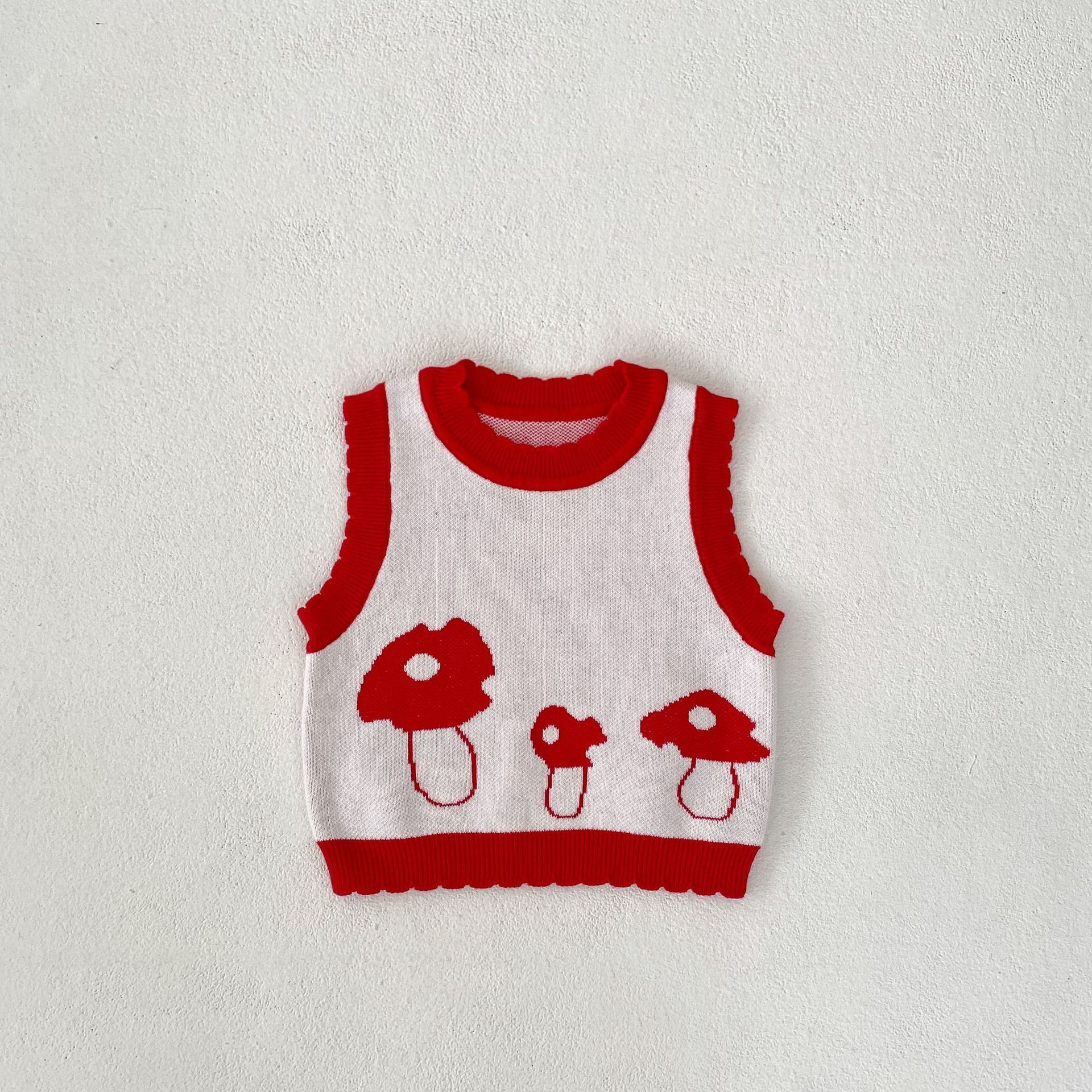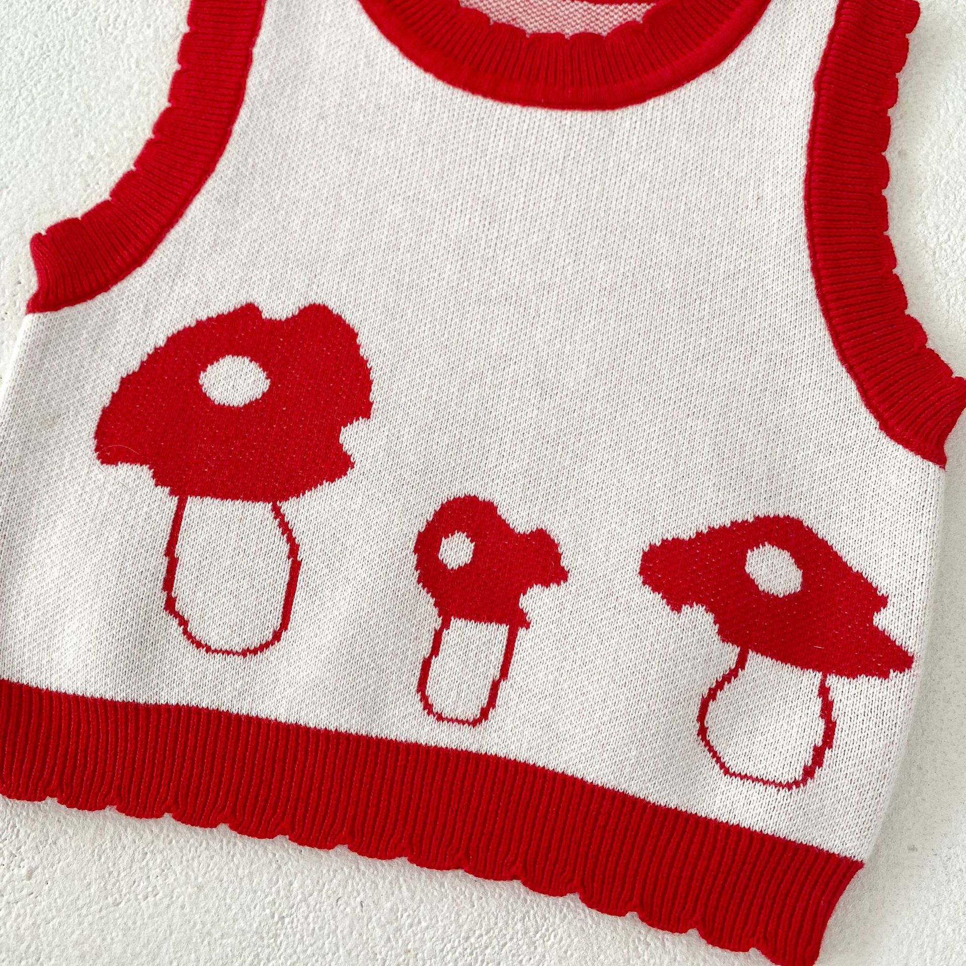Children's Cotton Knitted Vest Mushroom Jacquard Top