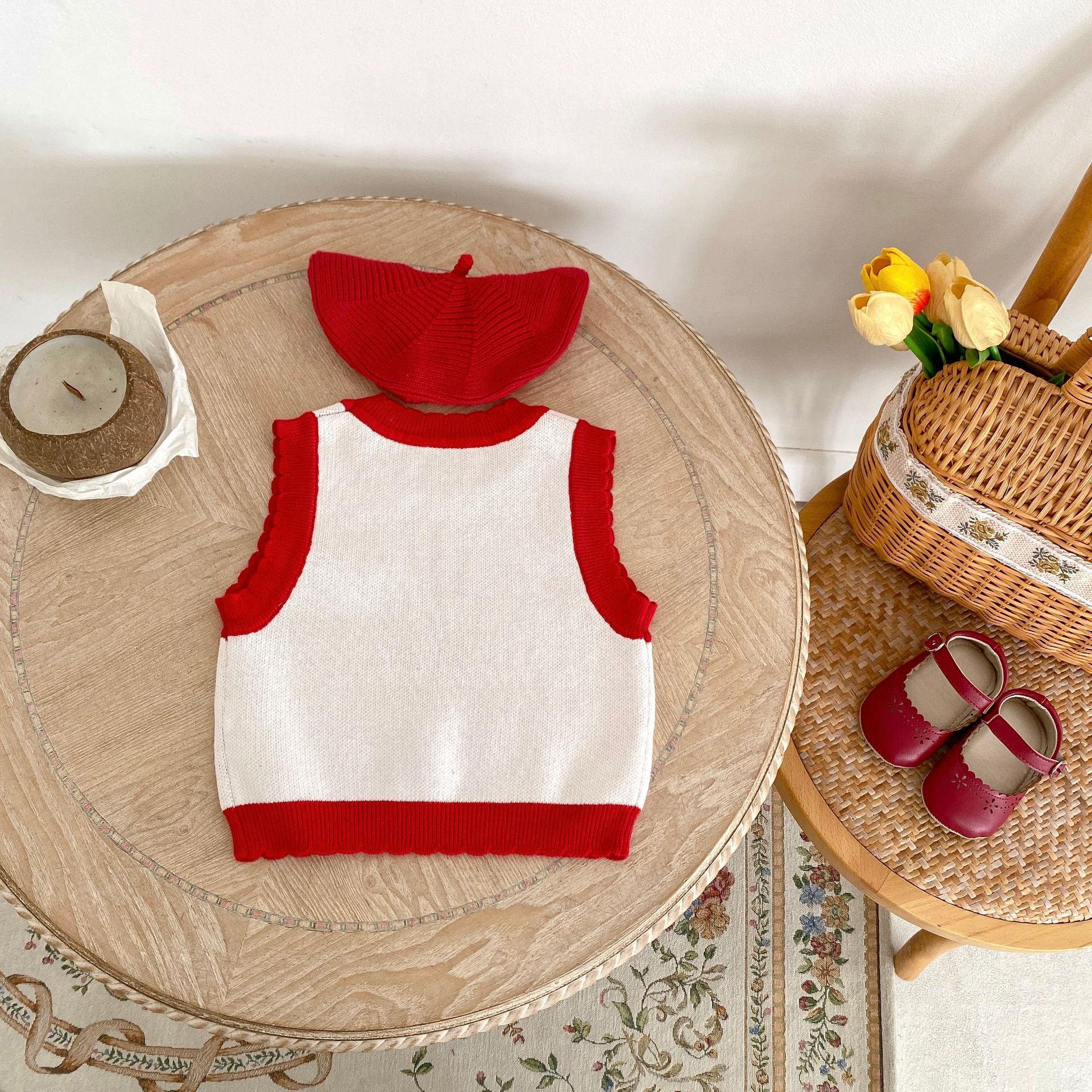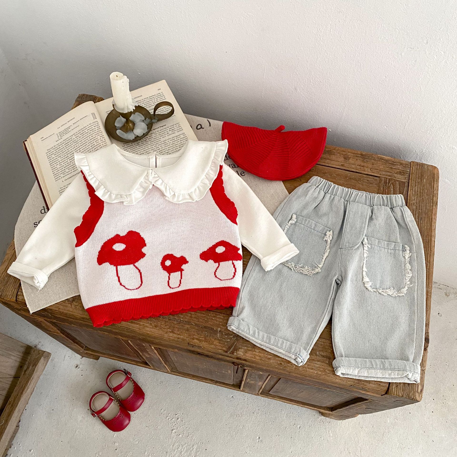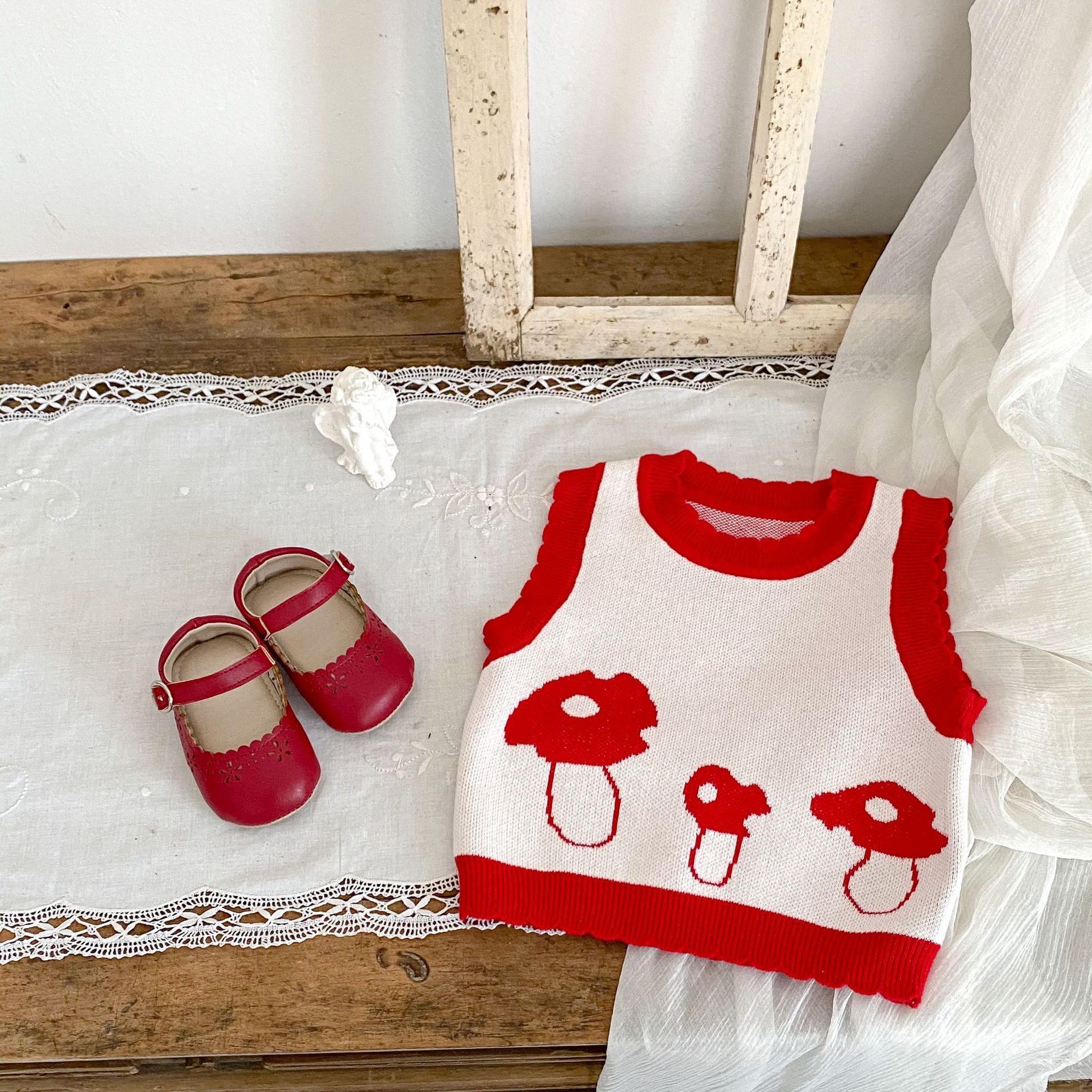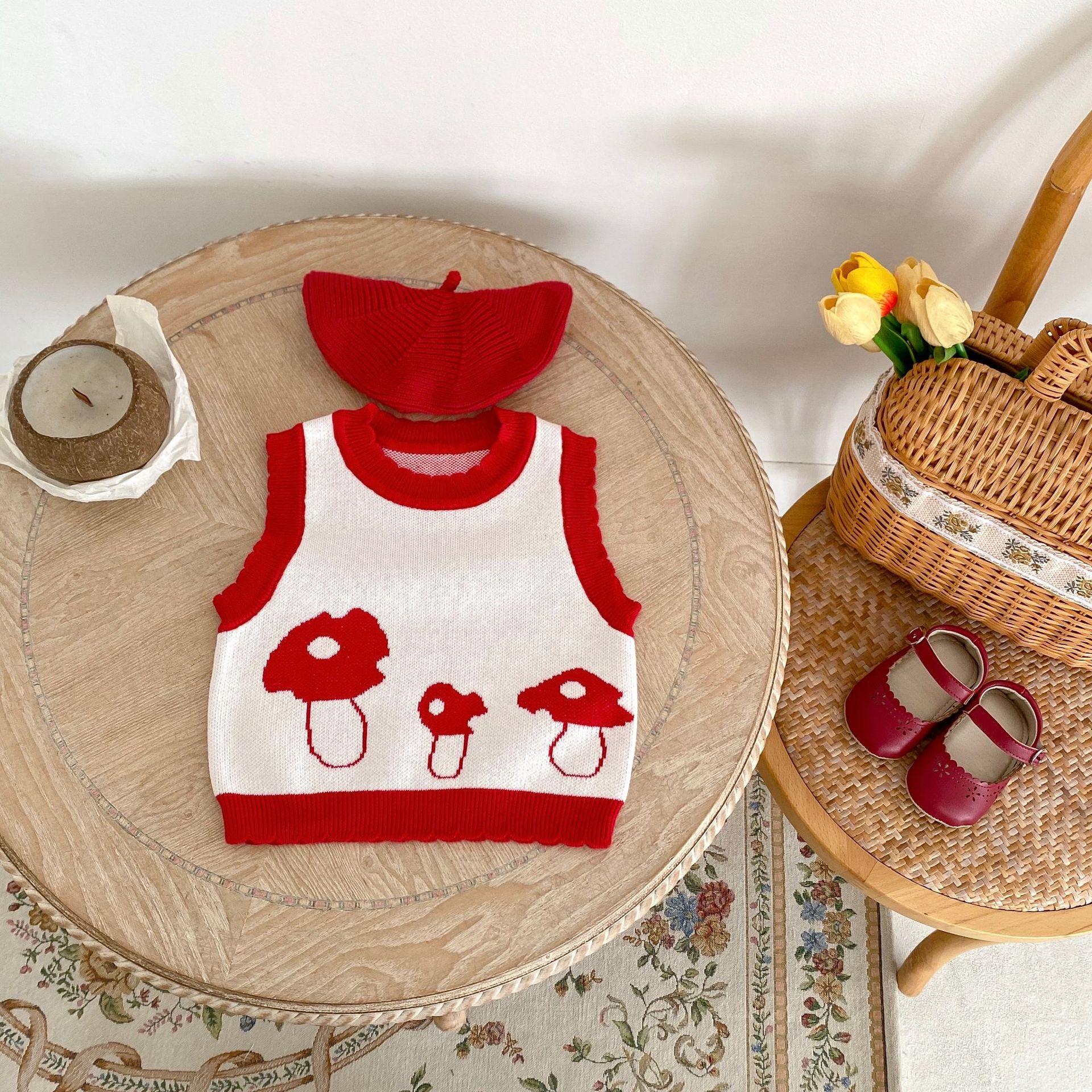 Key Features of the Children's Cotton Knitted Vest Mushroom Jacquard Top