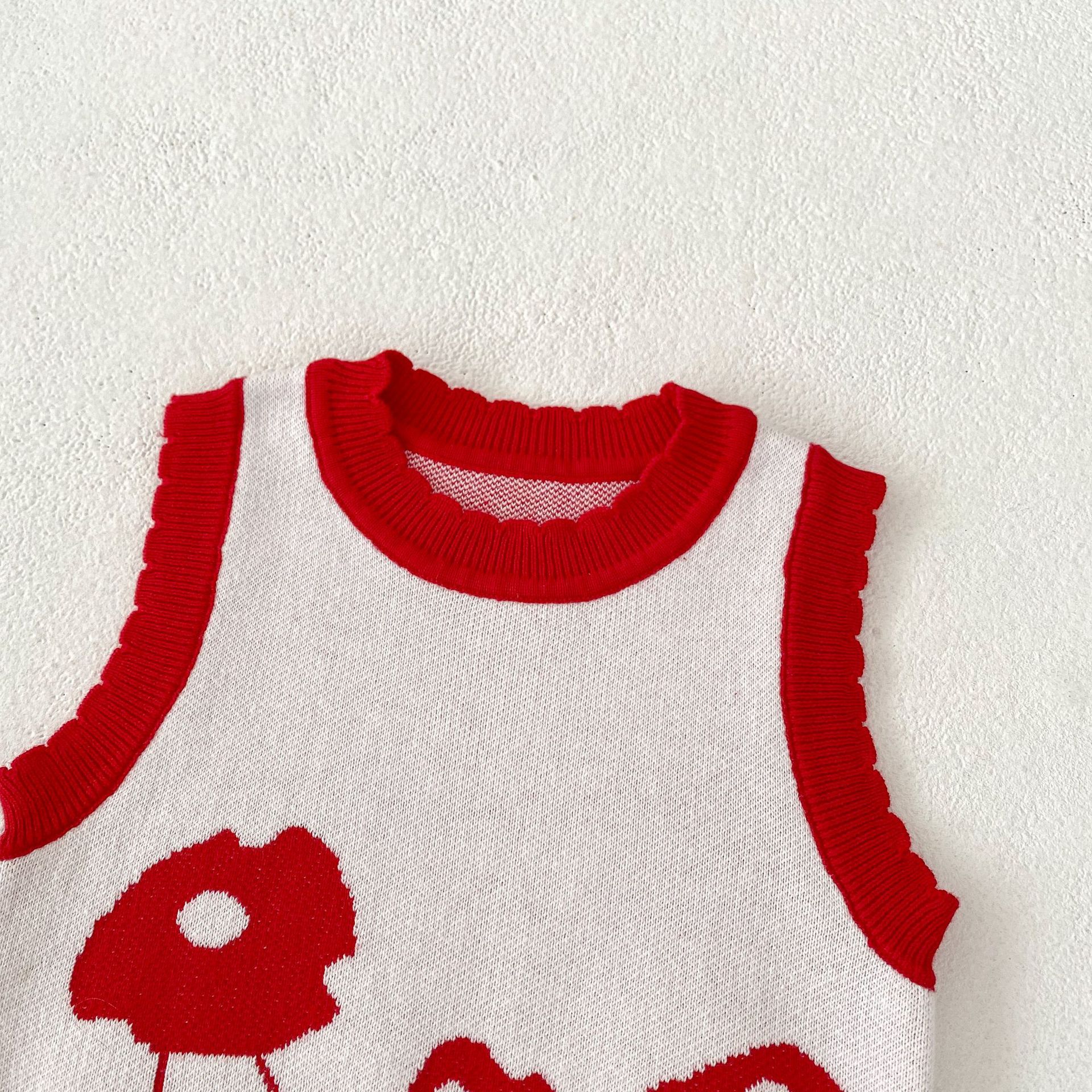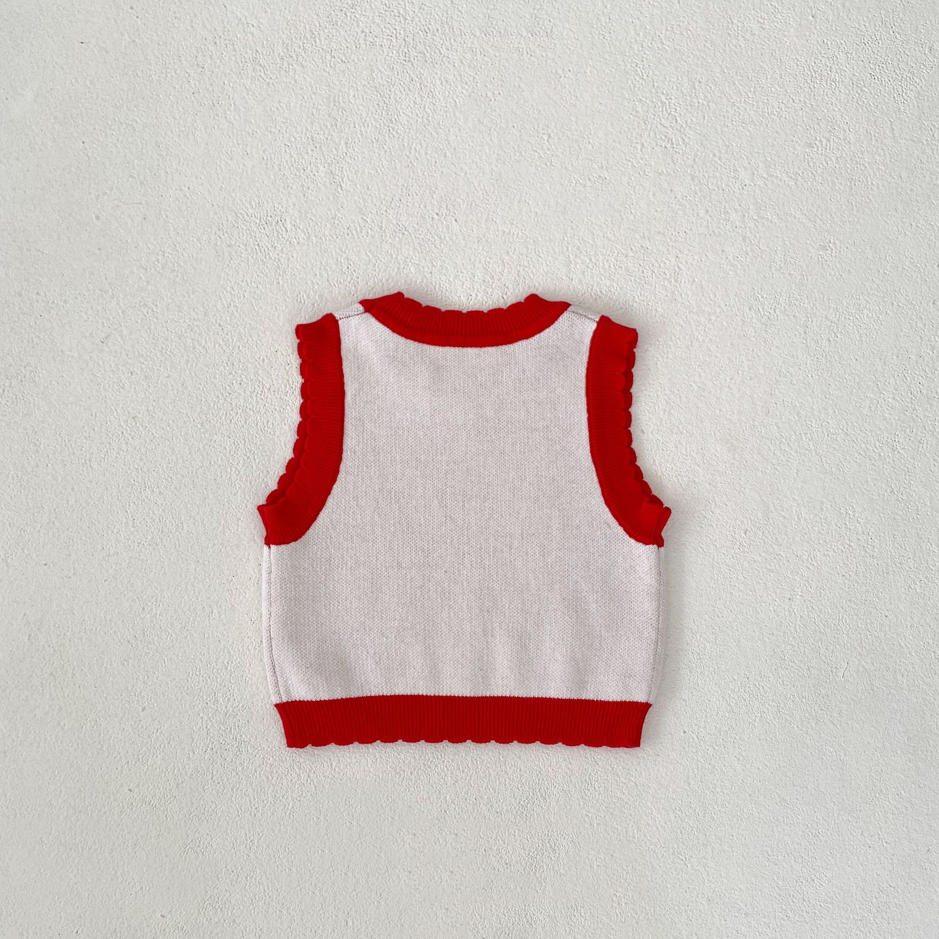 Made from soft, breathable cotton, this vest-style top is designed to keep your child comfortable throughout the day. The knitted fabric provides warmth and flexibility, making it perfect for layering during colder months or wearing alone during the warmer seasons.