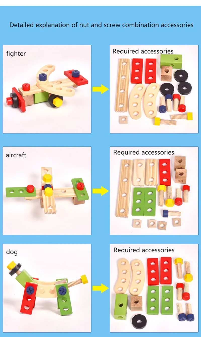 building imaginations,DIY design Develops hand-eye coordination encourages storytelling and imitative role-play Teach your child about tools and their functions. You can play the toy with your children, which is helpful for family relationship