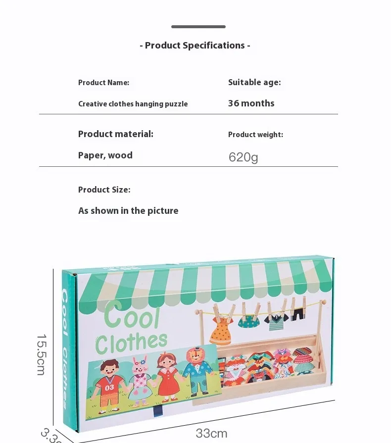 Made from safe, eco-friendly wood and featuring colourful clothing pieces, this puzzle offers a fun, Montessori-inspired approach to early education.