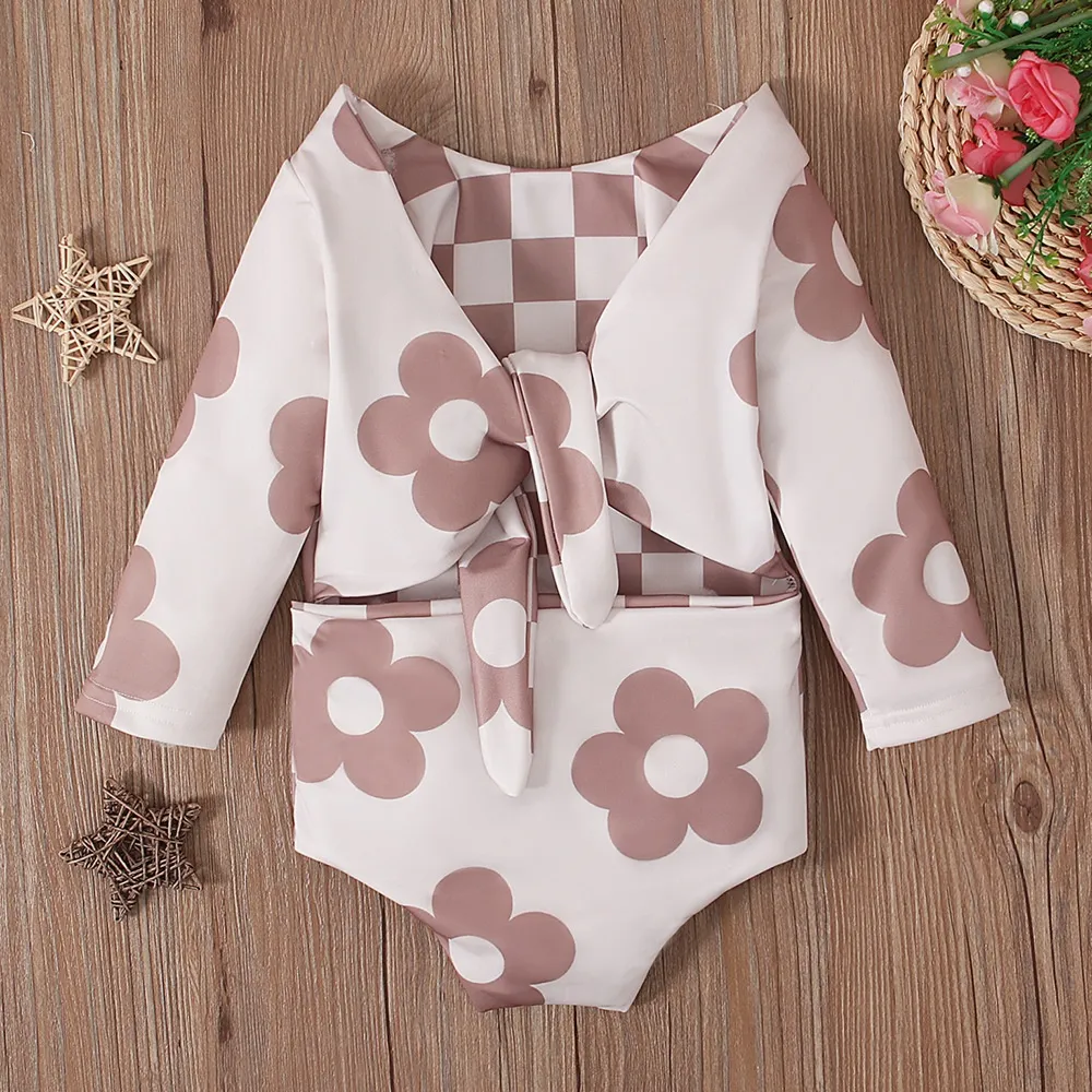 Children's European And American Spring And Autumn Swimsuit Girls' Small Flower Pattern Long Sleeve Triangle Rompers
