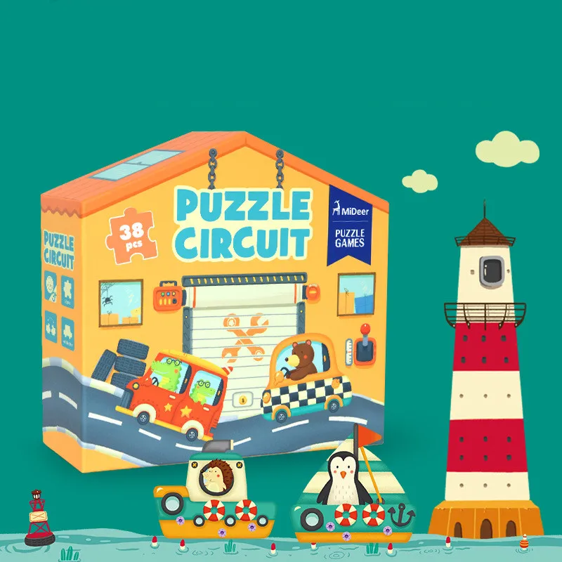 Features: 38 puzzle pieces, 2 small cars and 2 small boats