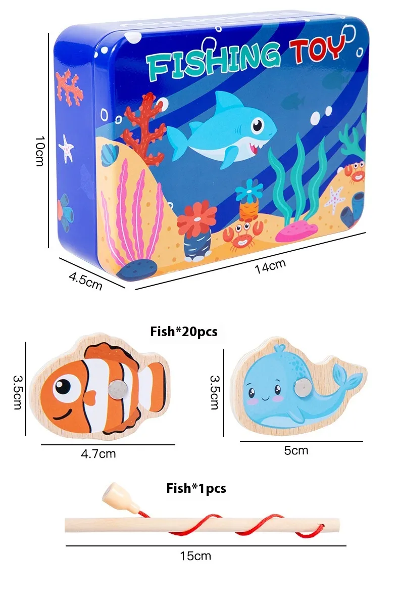 The Children's Magnetic Fishing Toy Iron Box Wooden Baby Brain and Intelligence Suit is the perfect combination of fun and learning for young children. This interactive toy set is designed to engage your little one’s imagination, enhance their cognitive skills, and promote hand-eye coordination—all while offering hours of playful entertainment. Featuring a magnetic fishing game, colorful fish, and a sturdy iron box for storage, this toy is ideal for toddlers and preschoolers looking to enjoy a hands-on activity that also encourages brain development.