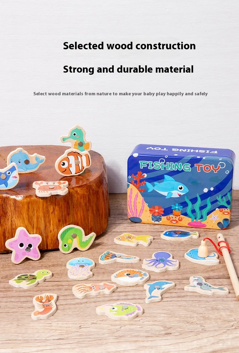 Children's Magnetic Fishing Toy Iron Box Wooden Baby Brain and Intelligence Suit: Fun, Learning, and Play Combined