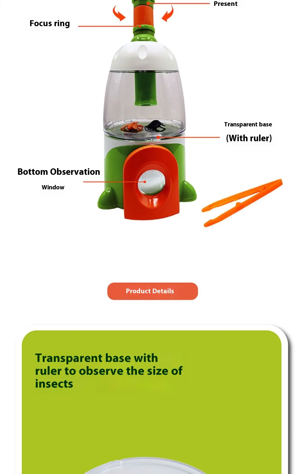 This insect observation toy is designed to combine learning and fun. It encourages children to get outside, collect insects, and observe them up close. As they explore, kids will not only develop a better understanding of insects but also strengthen their critical thinking and observation skills. Whether it's identifying species, understanding the roles of bugs in the environment, or learning about their life cycles, this toy provides endless educational opportunities.