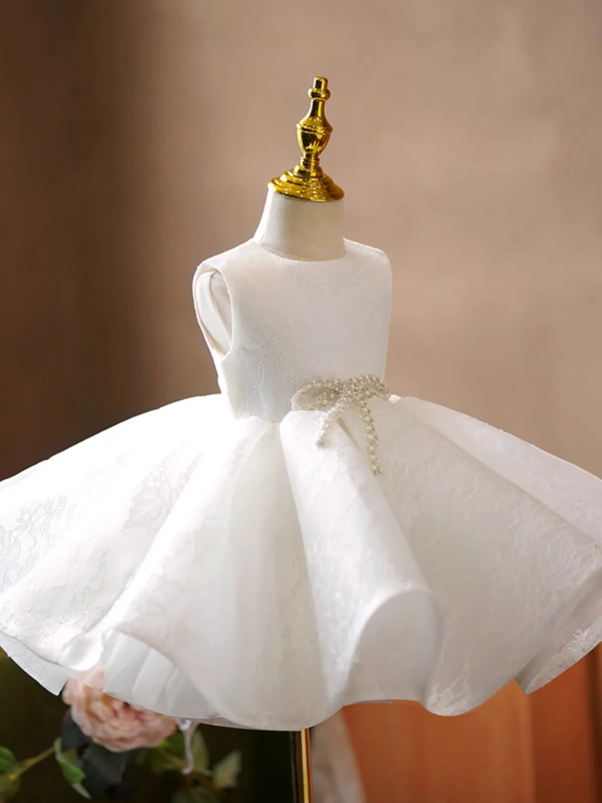 Available in a variety of timeless colours (such as pink, white, lavender, or champagne), this princess dress easily matches different themes, from weddings to birthday celebrations.