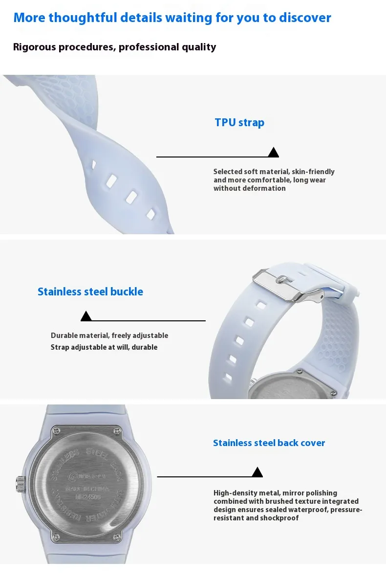 Equipped with precise quartz movement, the watch ensures accurate timekeeping. It’s ideal for students who need to stay on schedule for school, activities, and social events.
