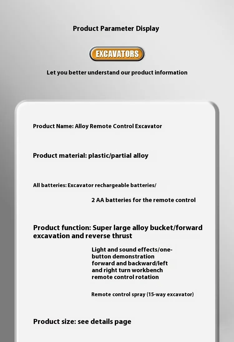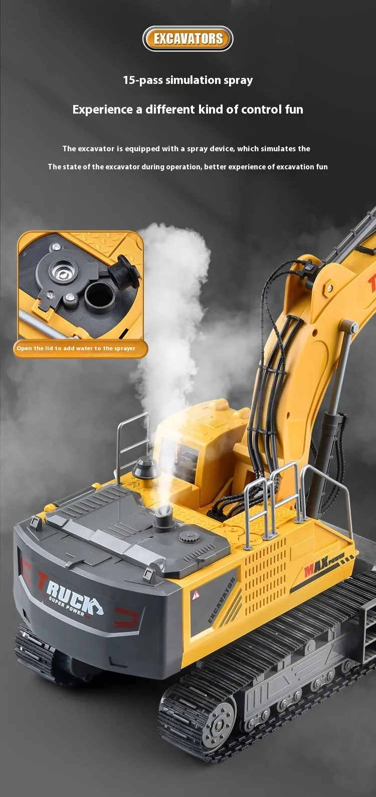 Crafted from high-quality alloy and non-toxic ABS plastic, the excavator car is sturdy, impact-resistant, and safe for children. The strong build ensures it can handle bumps, scrapes, and outdoor play. The 2.4GHz remote-control system provides smooth operation, allowing kids to move the excavator forward, backward, left, right, and control its digging arm just like a real construction vehicle.
