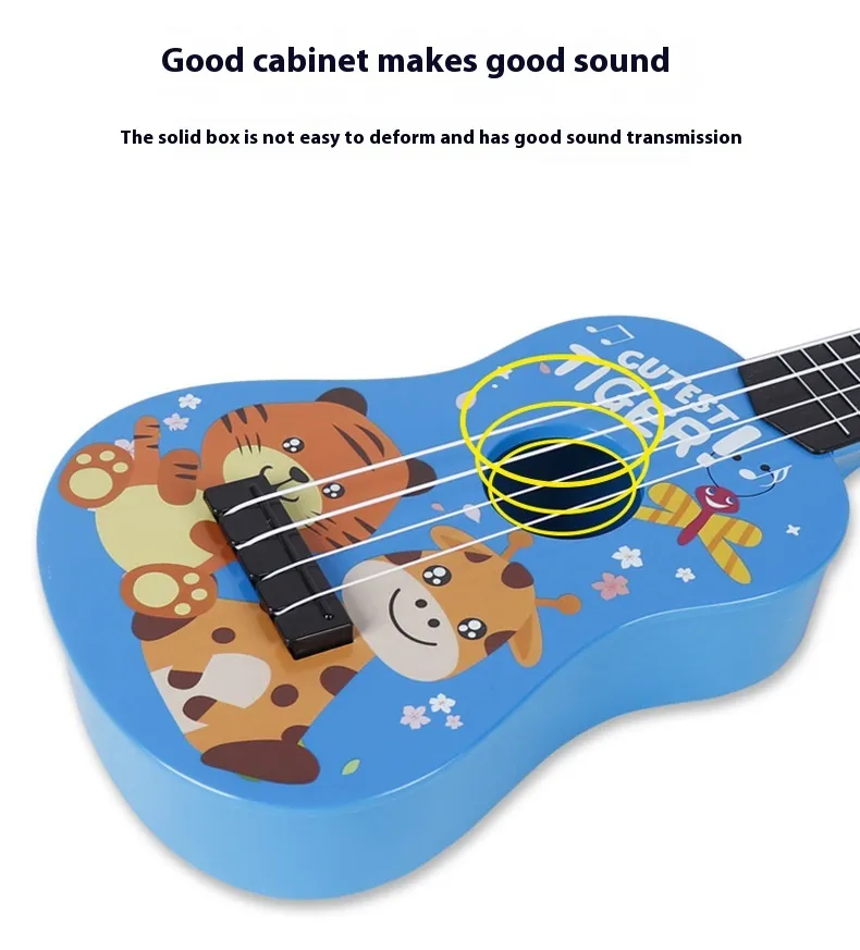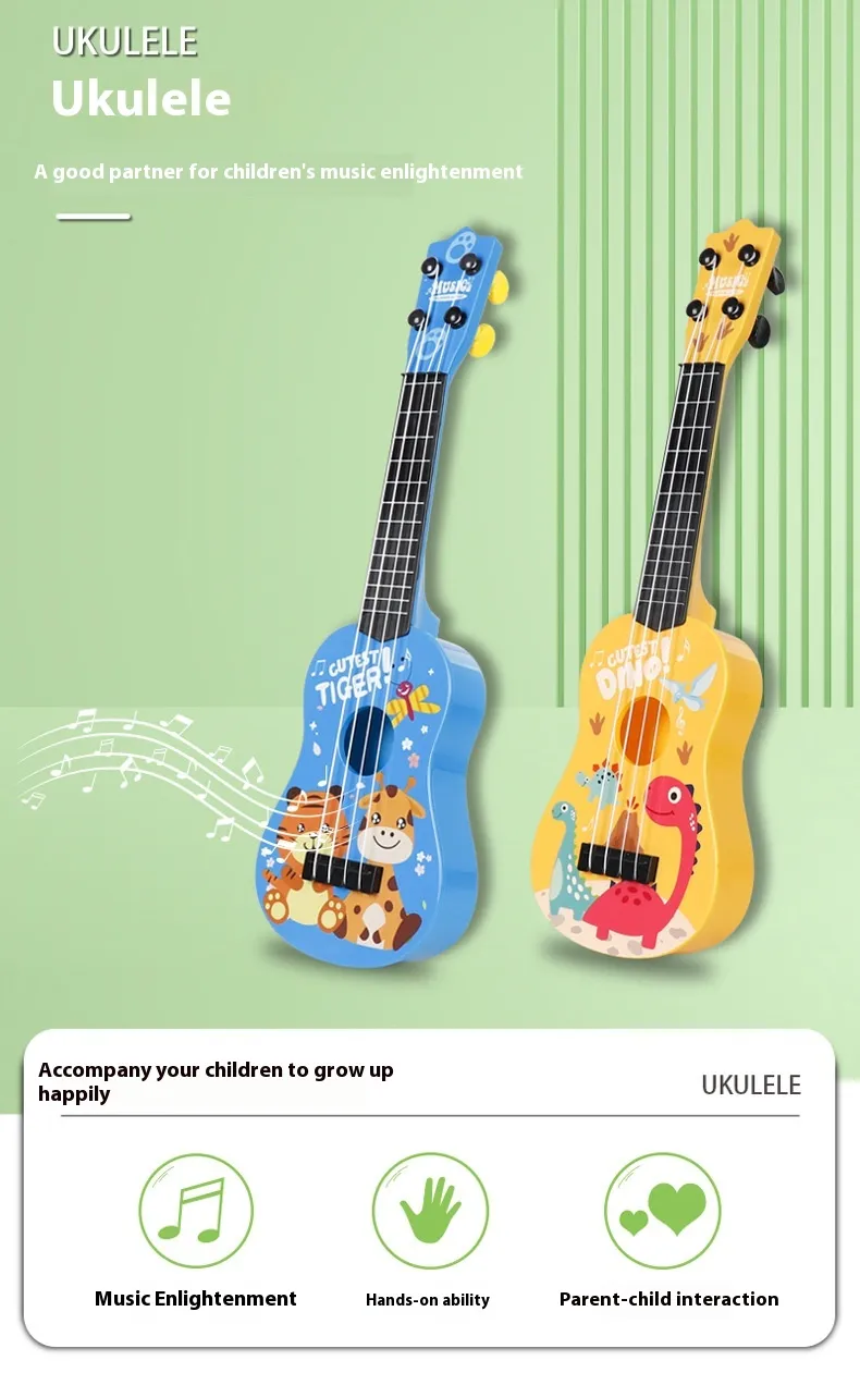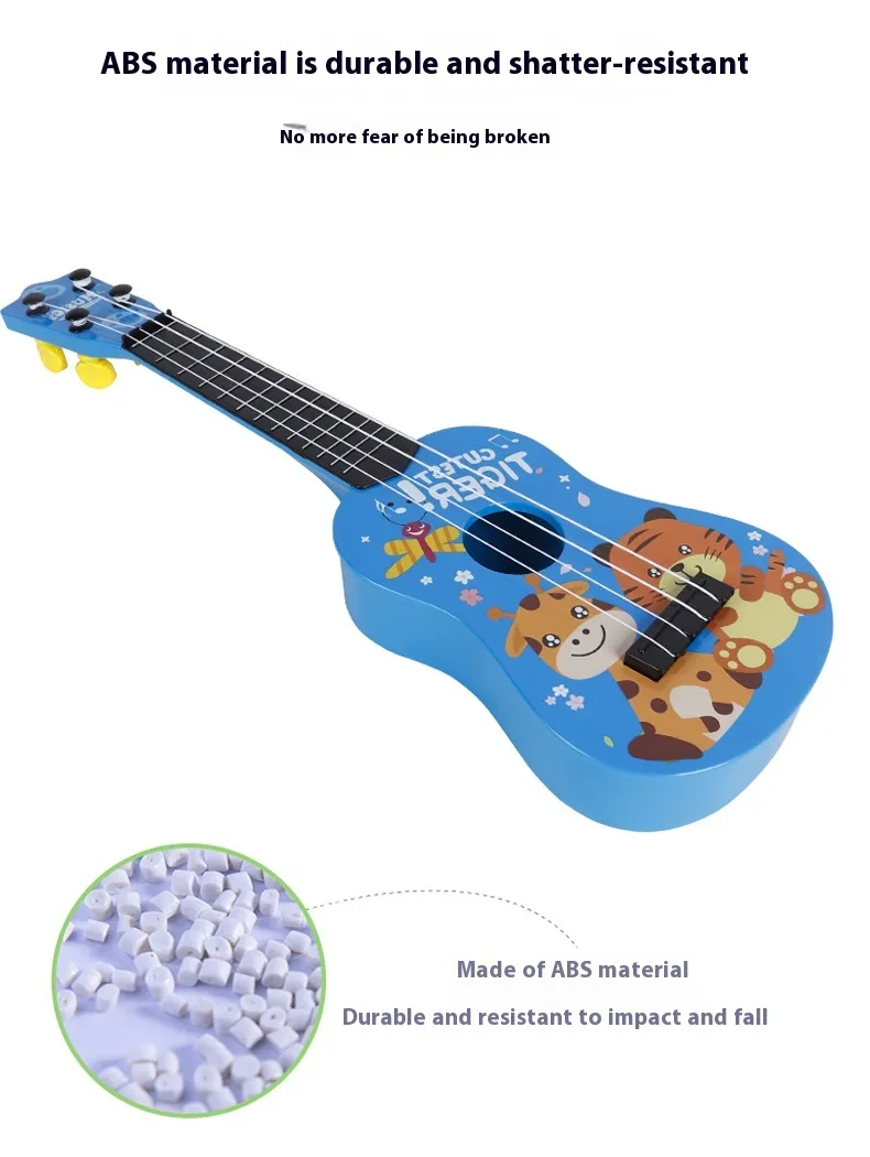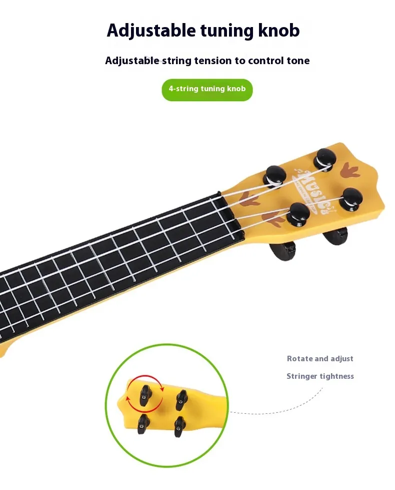 Playable Ukulele Design: Features four functional strings, allowing kids to learn basic musical techniques.