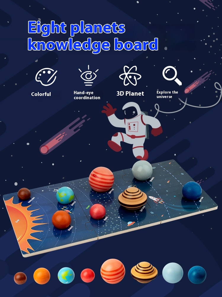 - Cognitive Development: Encourages cognitive skills such as problem-solving, fine motor skills, and spatial awareness. The puzzle challenges children to assemble the planets correctly and learn their names and order.