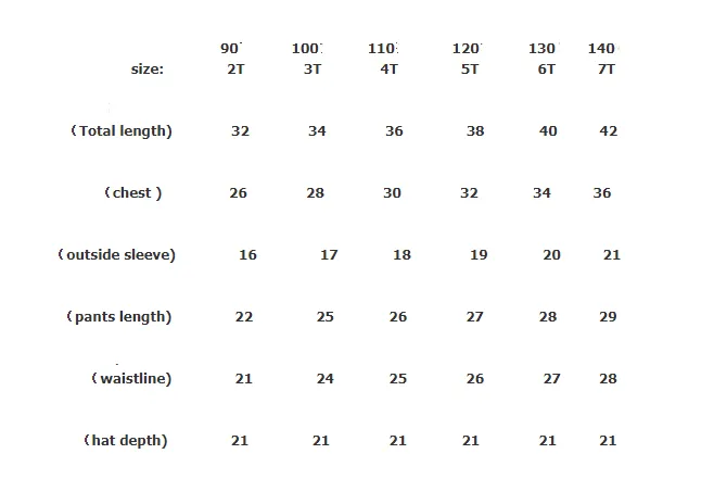 Size: Height 73-80 (2T) 90 yards, 75-85 (3T) 100 yards, 85-95 (4T) 110 yards, 95-105 (5T) 120, 105-115 (6T) 130, 115-120 (7T) 140