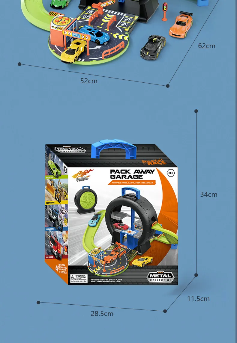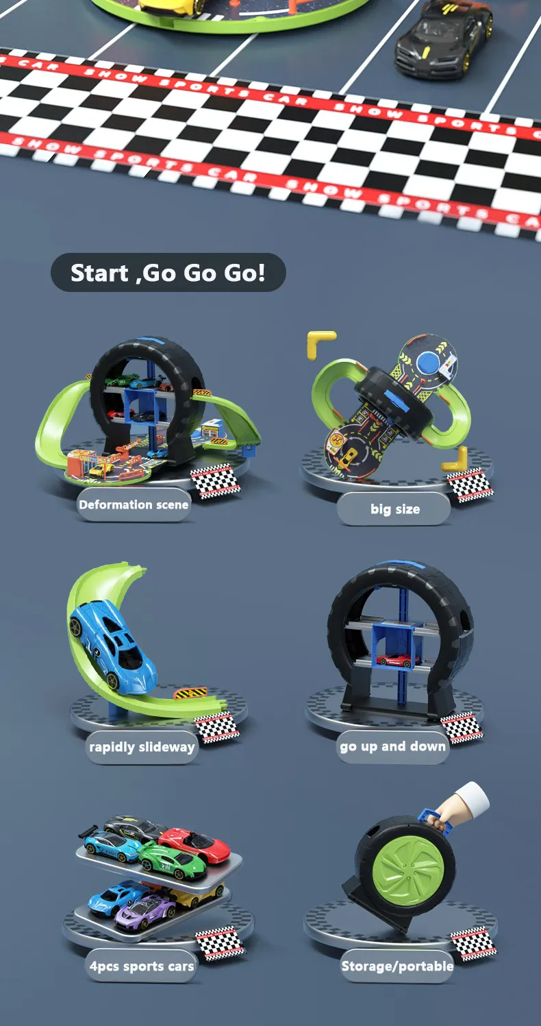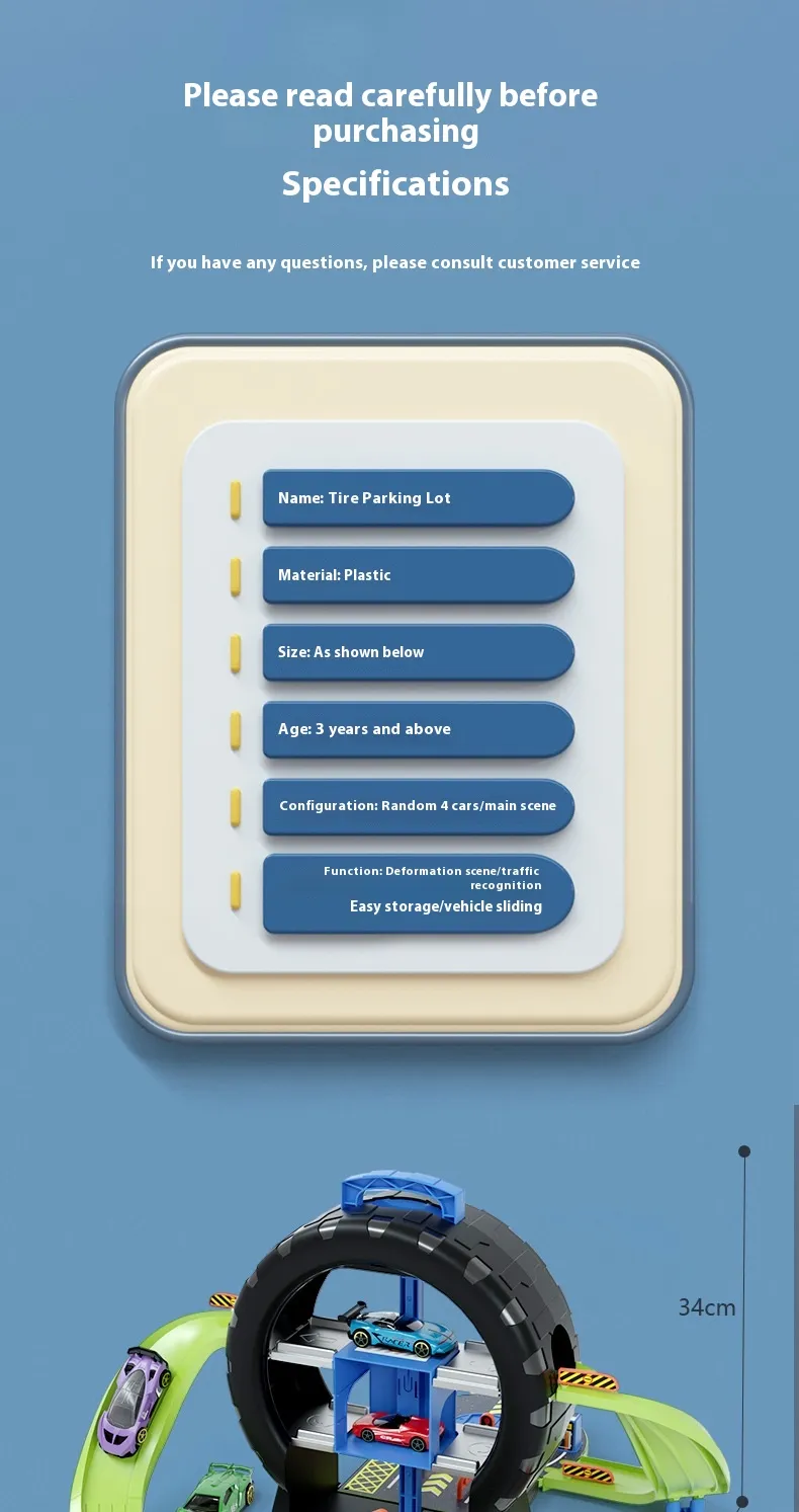 Children can use these cars to drive through the tire track parking lot, race, or engage in imaginative play scenarios. The robust design of the cars means they can be used for years of play without easily wearing out, making this toy set a great investment.