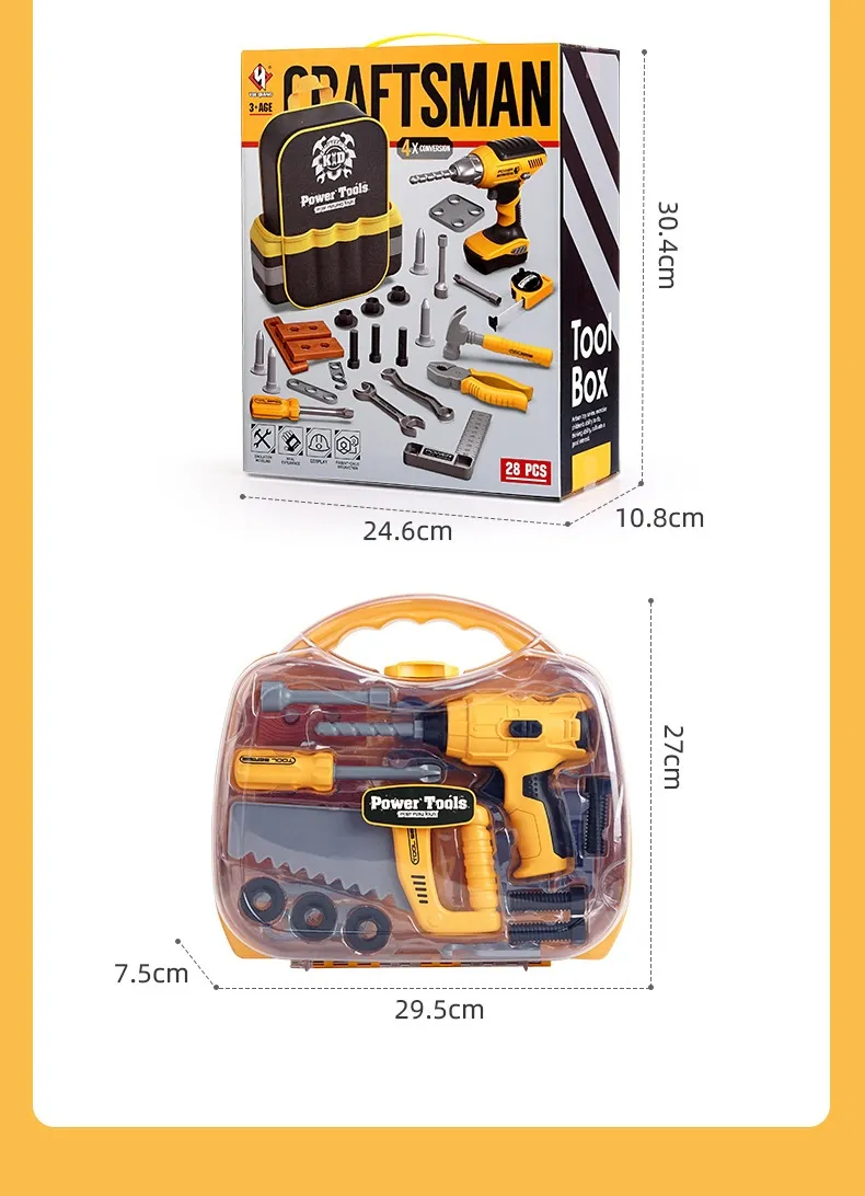 The Children's Toolbox Toy Suit Play House Electric Drill Role is a fantastic way to engage your child in hands-on, creative play while helping them develop important skills like motor coordination, problem-solving, and teamwork. With its realistic tools, including a working electric drill, this toy set offers hours of entertainment and learning for your little builder. It’s the perfect gift for birthdays, holidays, or any occasion. Encourage your child’s imagination and creativity with this fun and educational toolbox set!