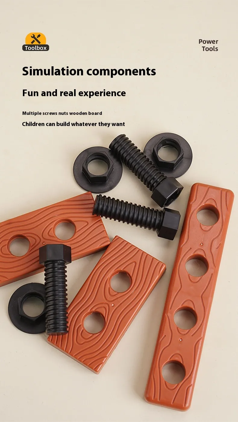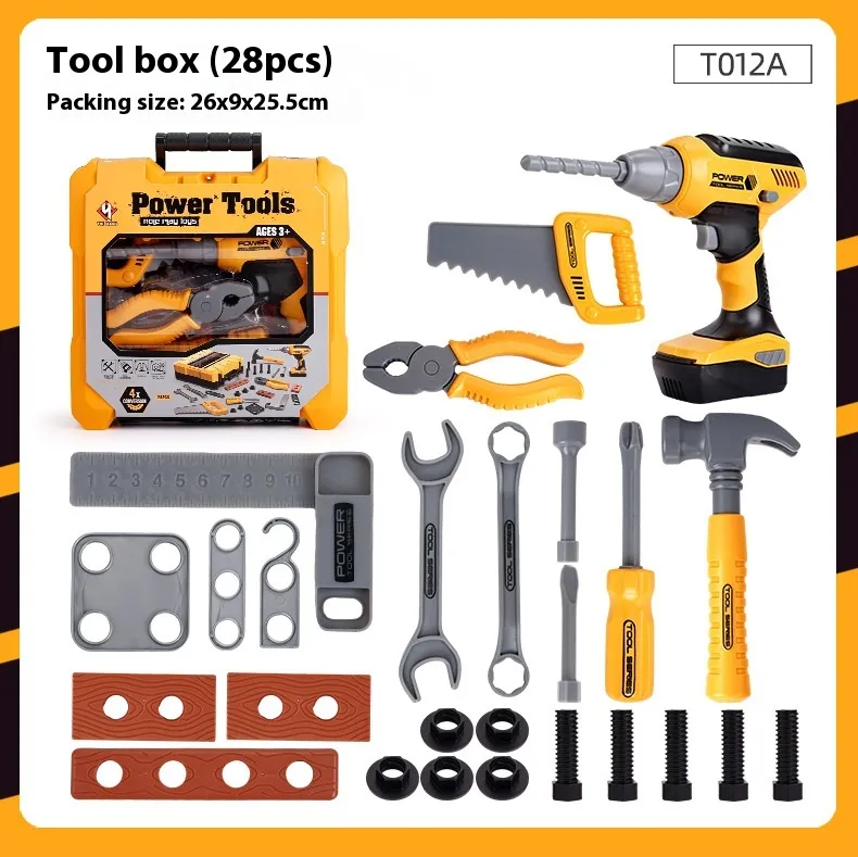 Complete Toolbox Set: Includes a variety of tools such as a child-safe electric drill, hammer, wrench, screwdriver, and
