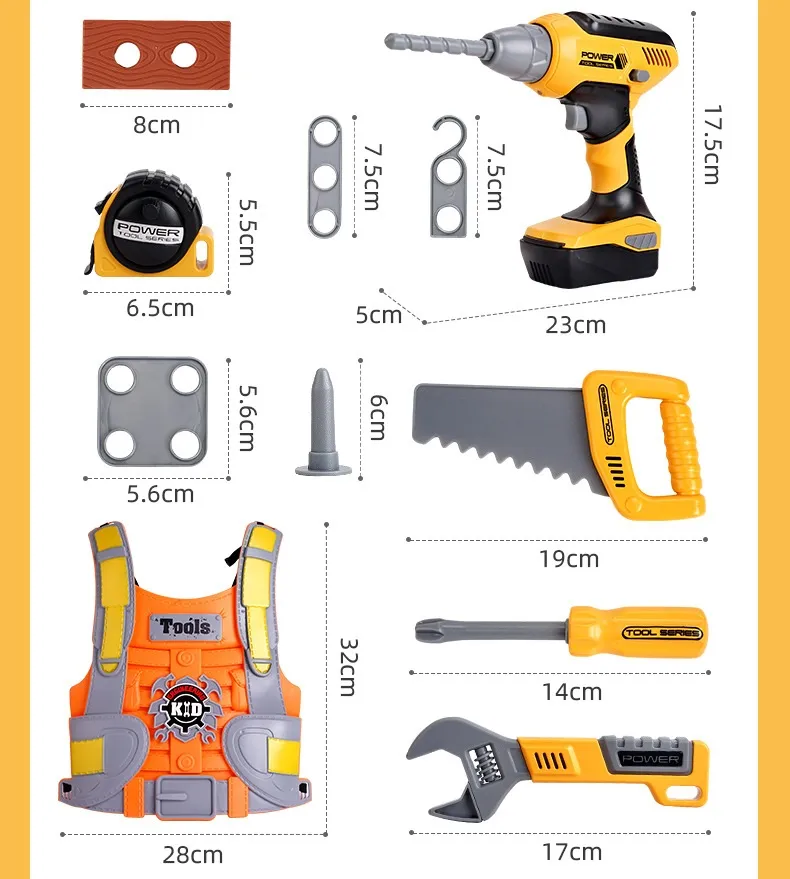Let your little one unleash their inner builder with the Children's Toolbox Toy Suit Play House Electric Drill Role! This interactive and educational toy set is perfect for children who love to explore their creative side and learn through play. Designed to mimic a real-life toolbox, this set includes a variety of pretend tools, including a functioning electric drill, hammer, wrench, and more, making it the ultimate playtime accessory for aspiring builders.
