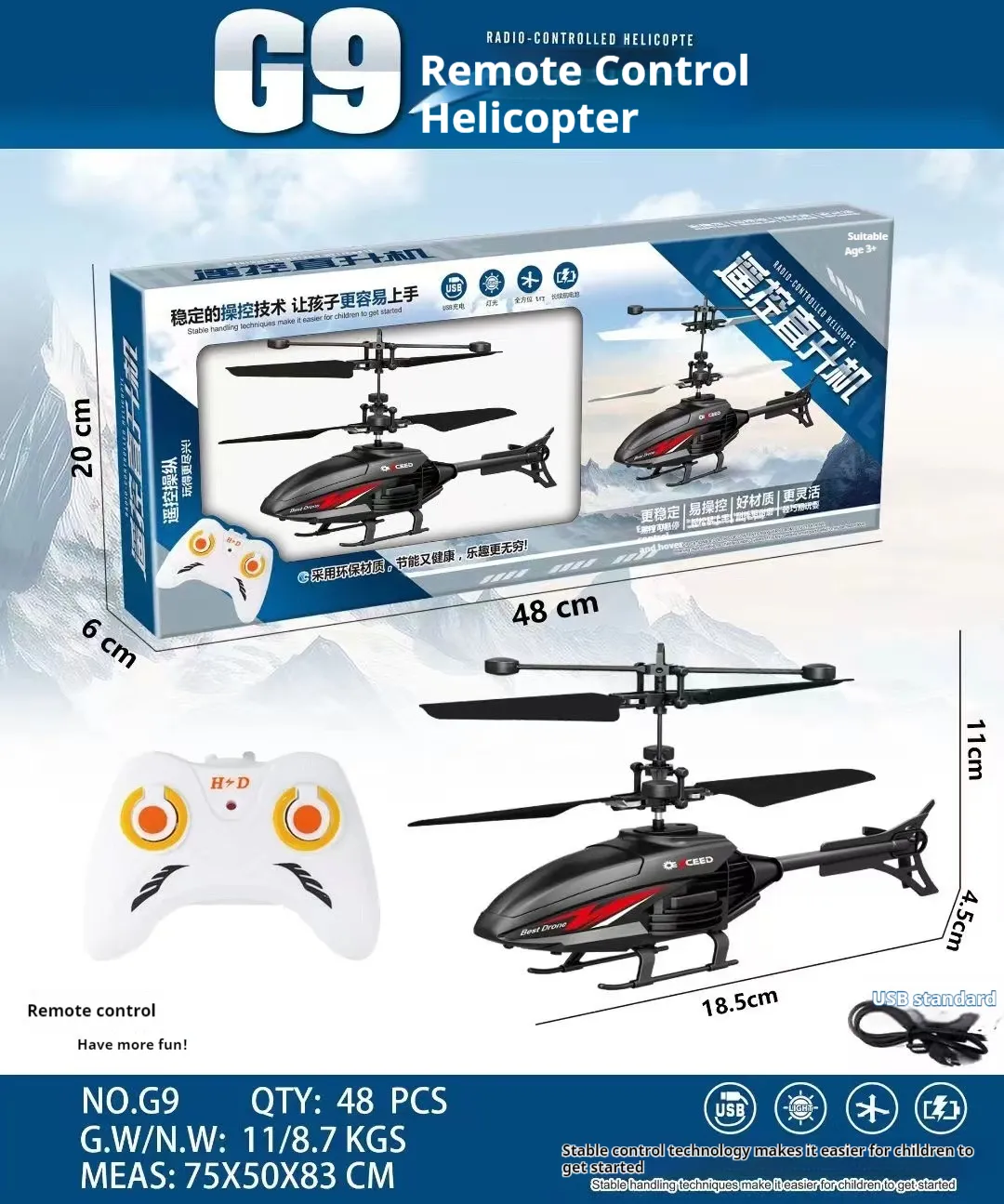The Children’s Toy Remote Control Helicopter is equipped with a USB charging feature, making it easy and convenient to keep the fun going. Simply connect the helicopter to a USB charger (included) to recharge the battery and get back to flying in no time. The USB charging system eliminates the need for disposable batteries, which is both eco-friendly and cost-effective.